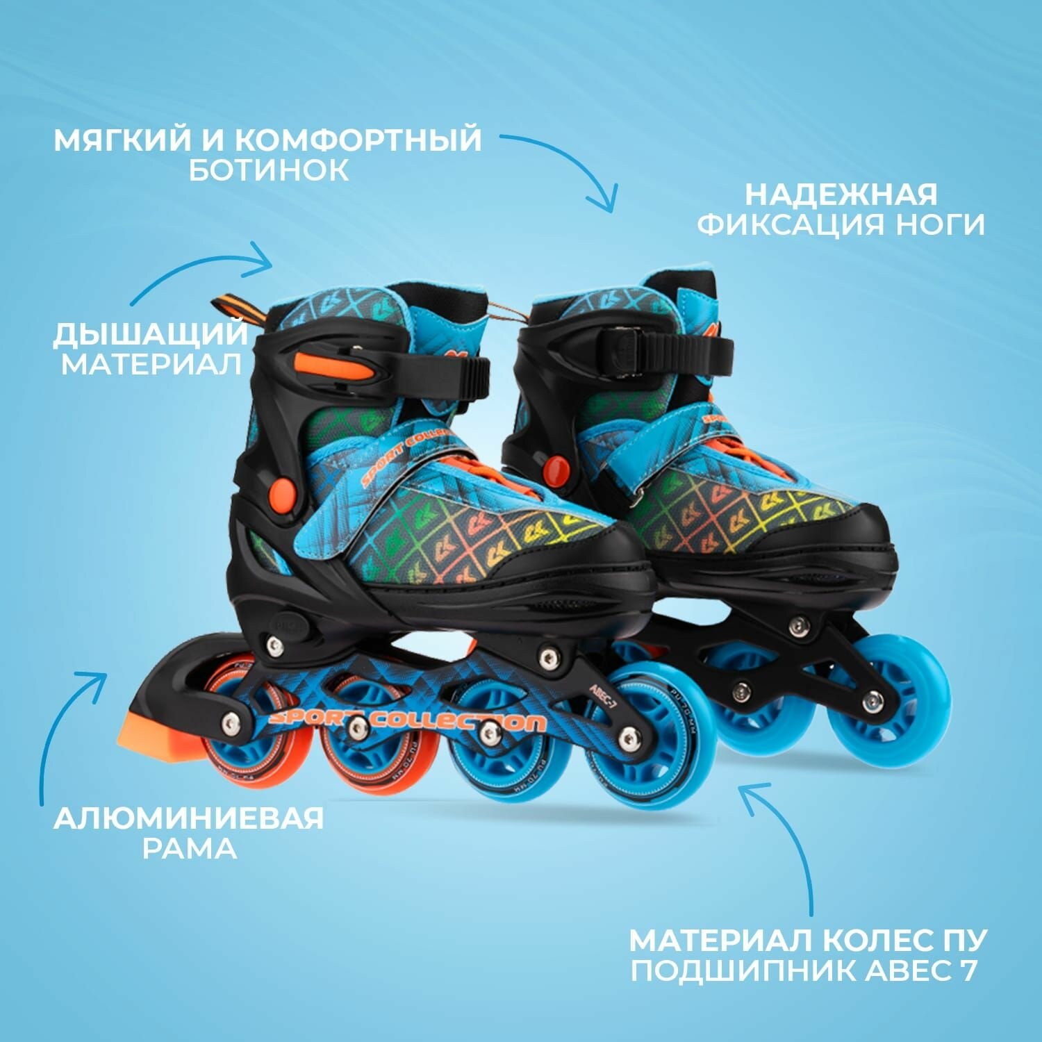 Раздвижные роликовые коньки SPORT COLLECTION синий 29-32 интересное: