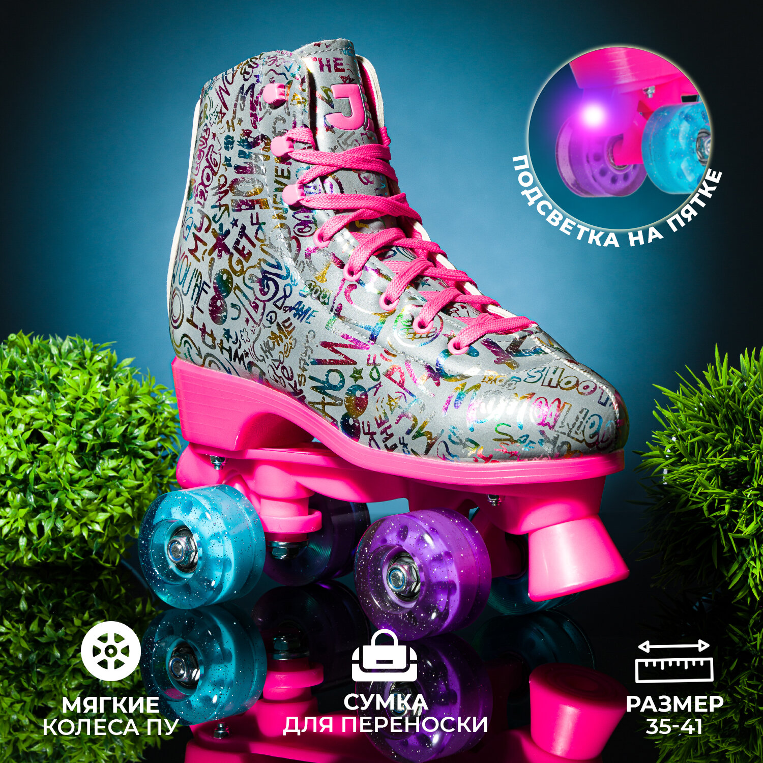Роликовые коньки квады JE-SQ -590-80-Pink-35 интересное: