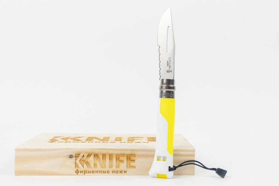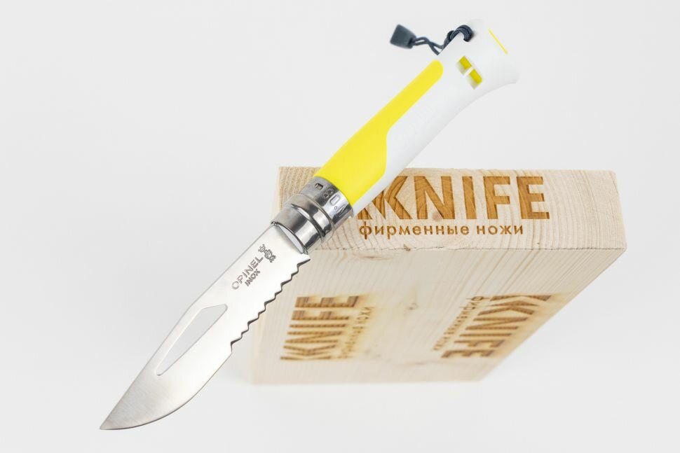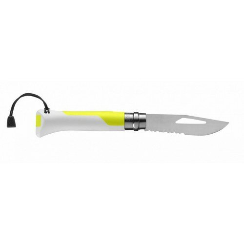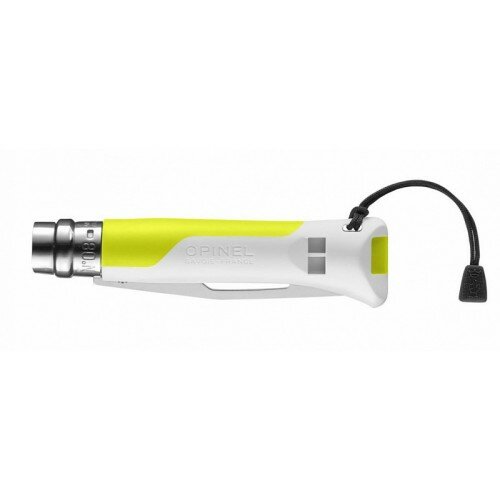 Нож Opinel серии Specialists Outdoor №08, клинок 8,5см, нерж.сталь, пластик, свисток, темляк, белый/жёлтый