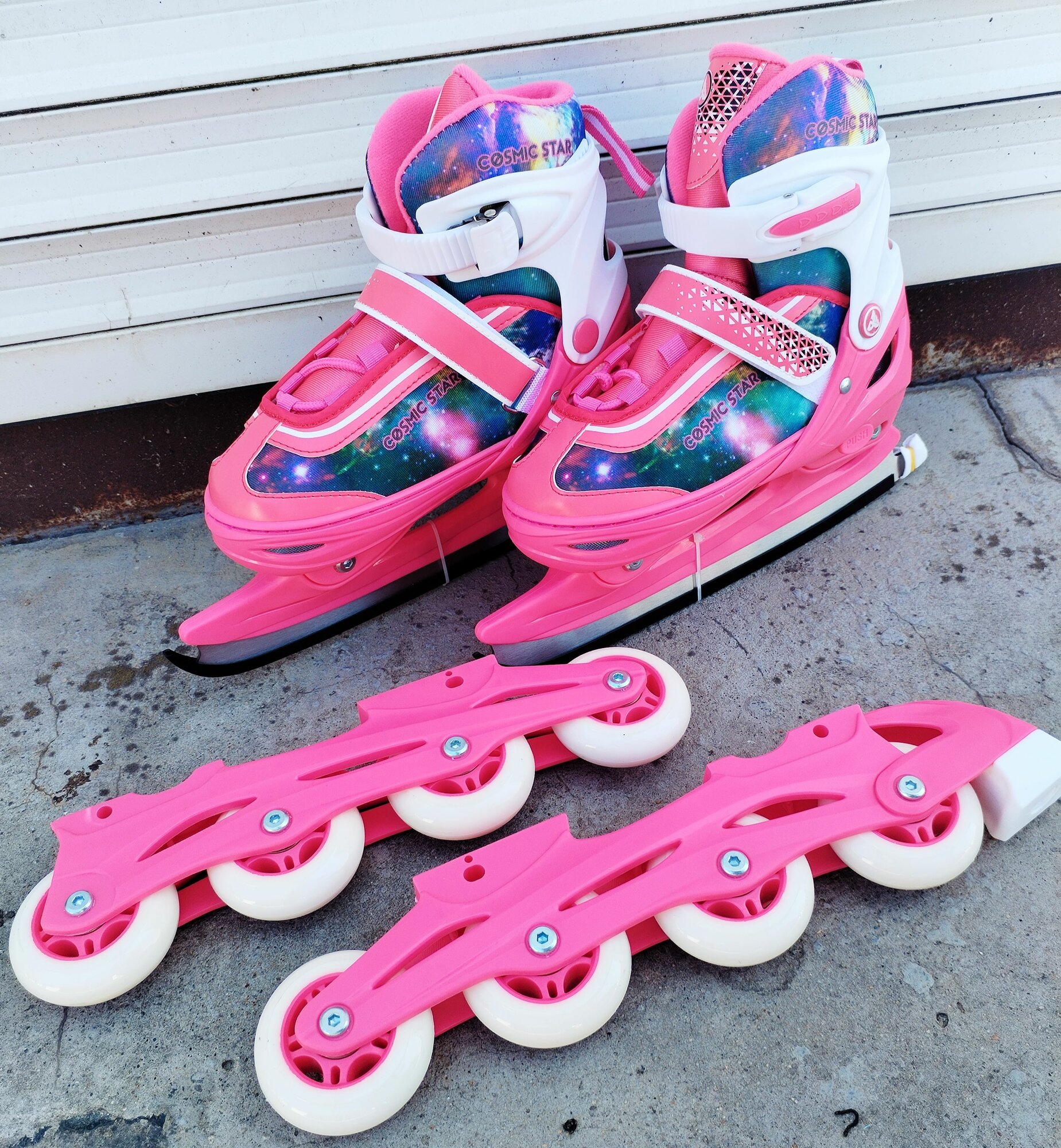 Ролики-Коньки раздвижные 2 в 1 Cosmic Star/розовые интересное: