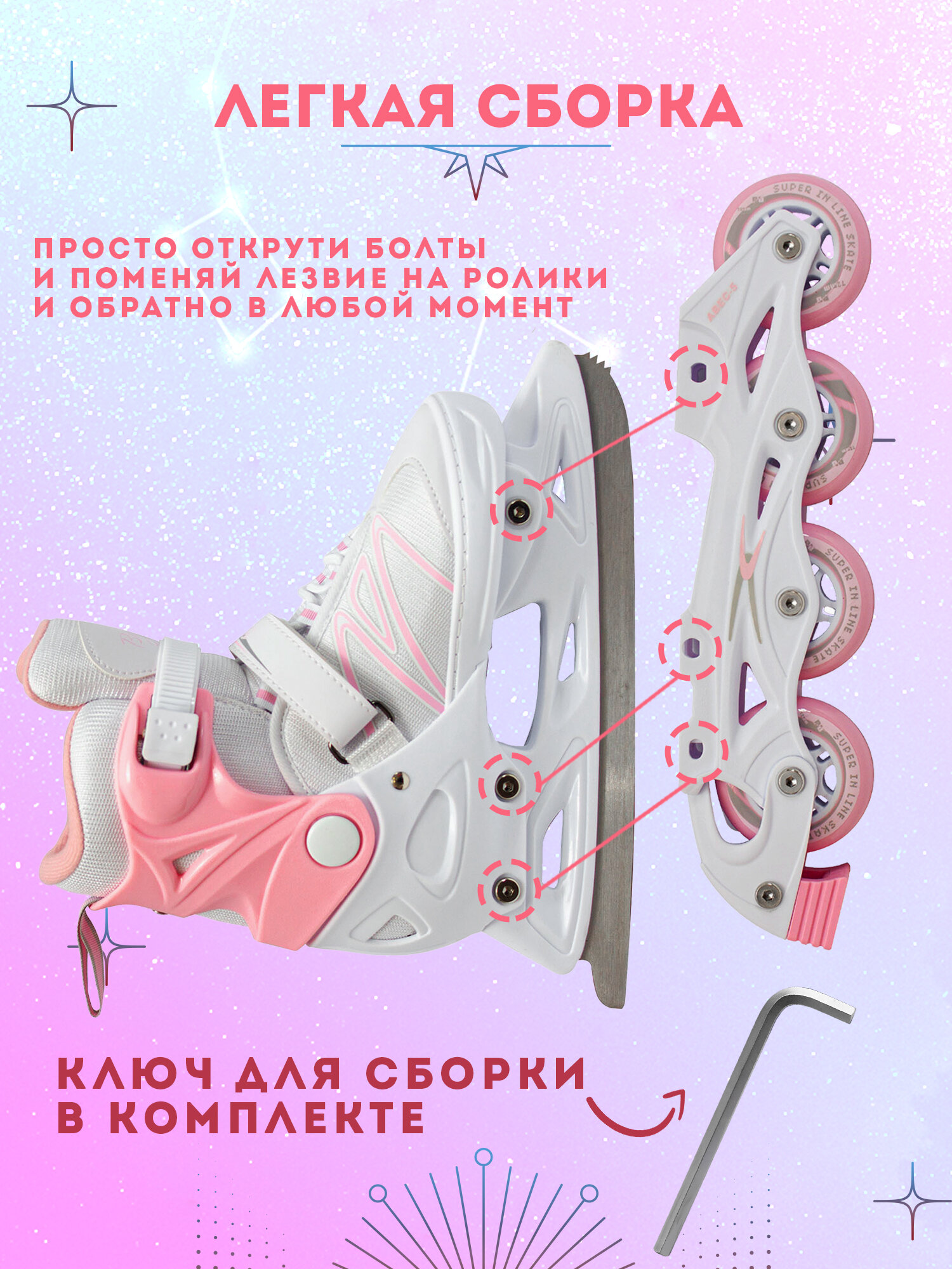 СохранитьРолики-коньки BIG BRO GLAM PW-223В-153-1 2в1 раздвижные фигурные интересное: