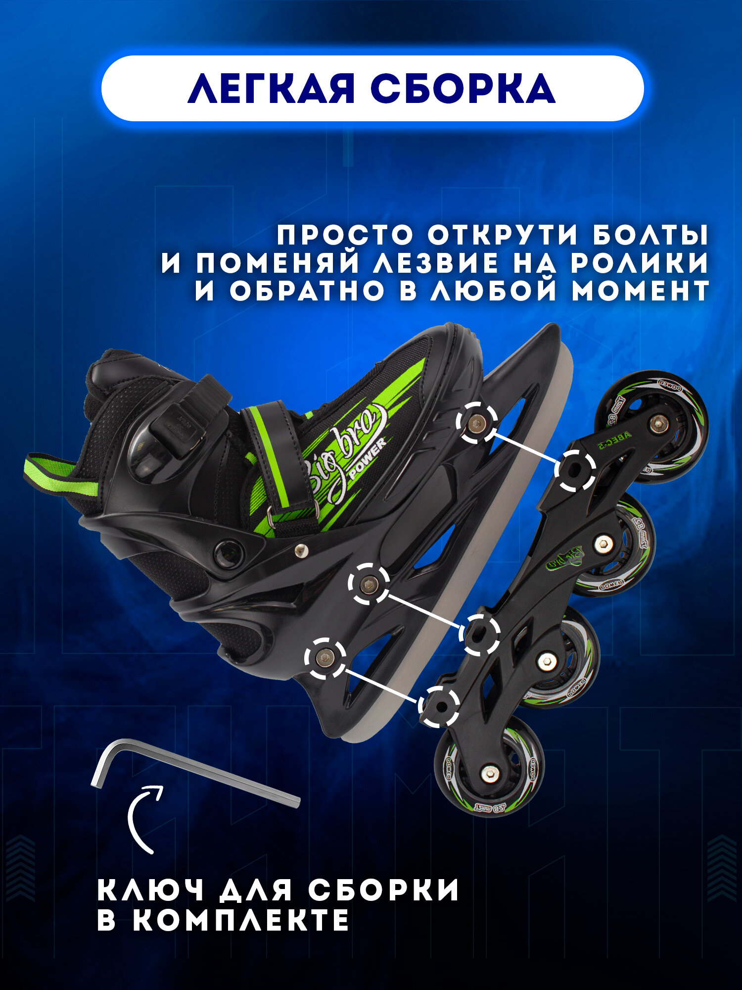Ролики-коньки BIG BRO PW-223В-122 2в1 раздвижные хоккейные, размер 29-32