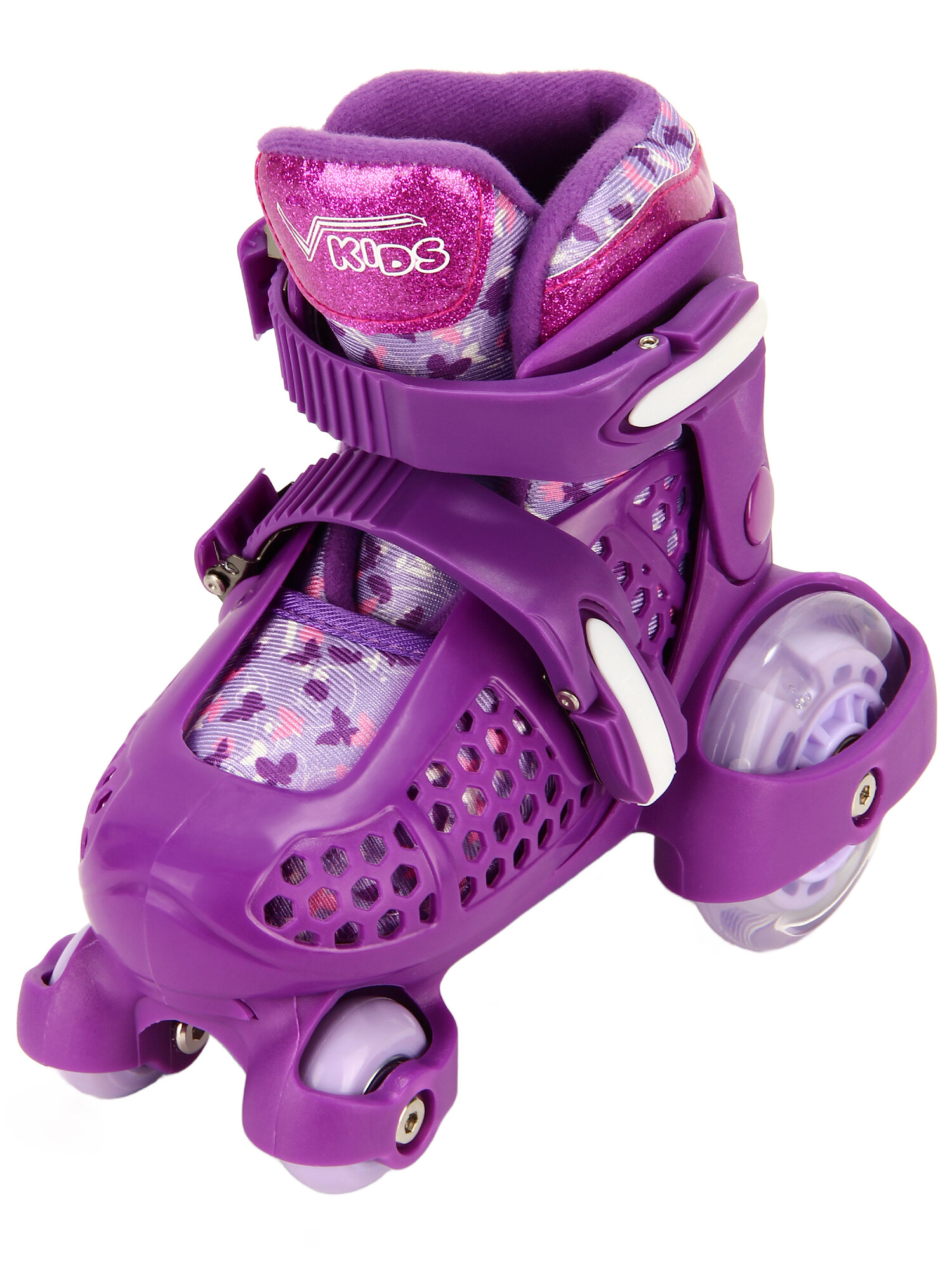 Купить Роликовые коньки квады детские раздвижные 30-33, защитный набор в комплекте, ABEC7, фиолетовые