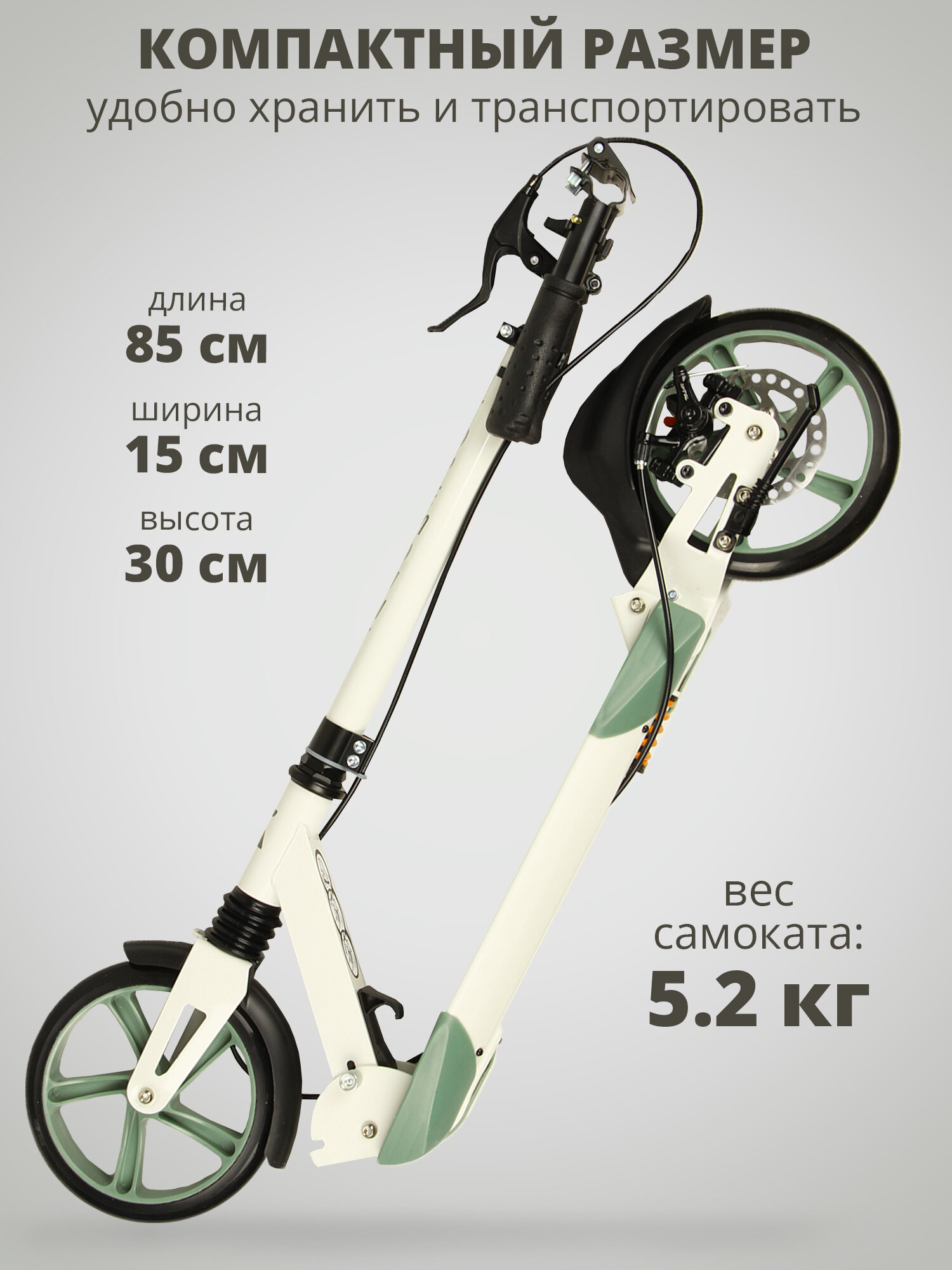 Самокат двухколесный TOPEMOUNT, ручной дисковый тормоз, 2 амортизатора, складной, 200 мм, зеленый