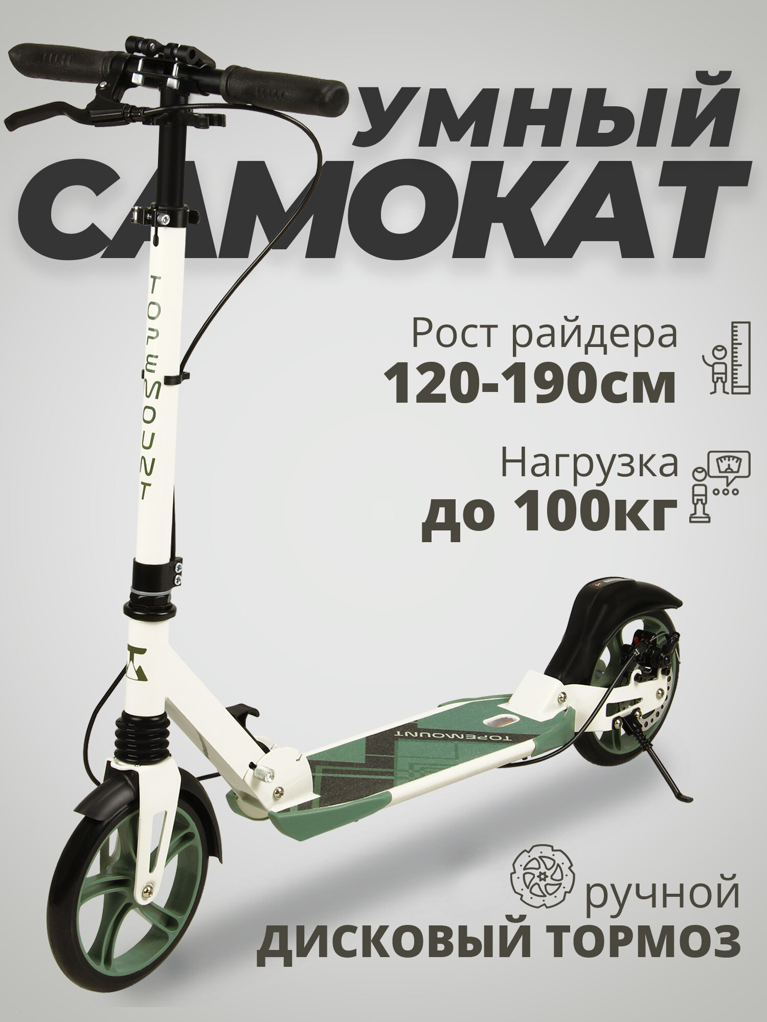 Самокат двухколесный TOPEMOUNT, 2 амортизатора, складной, 200 мм, темно-зеленый