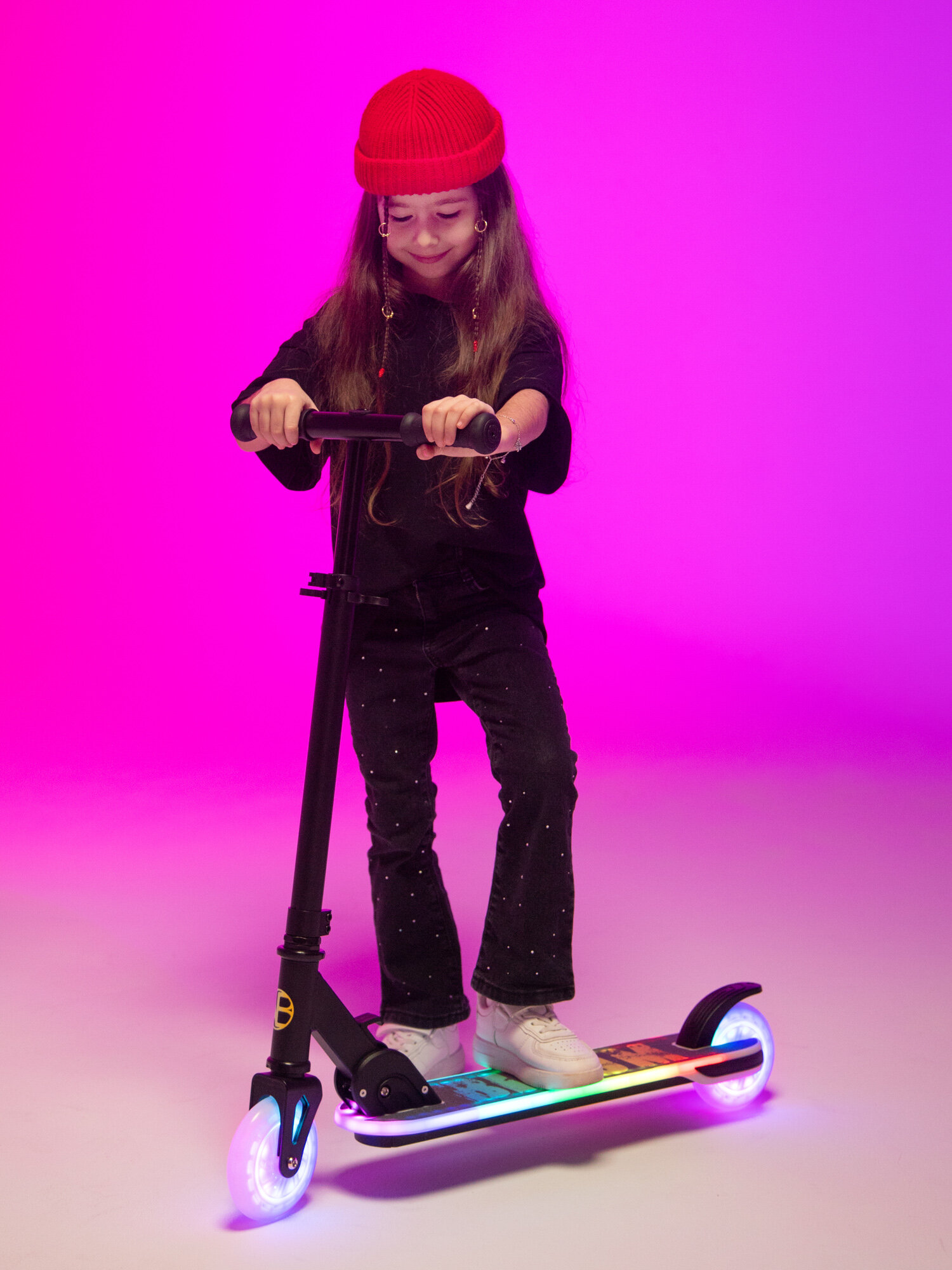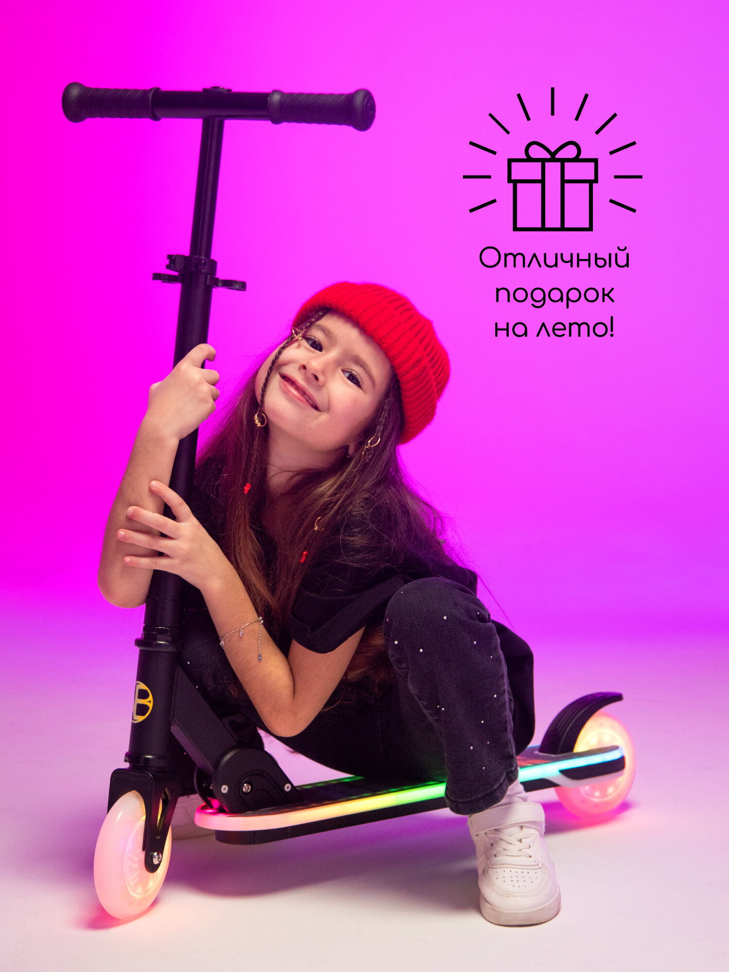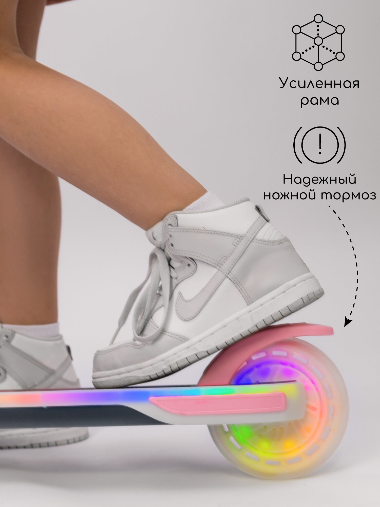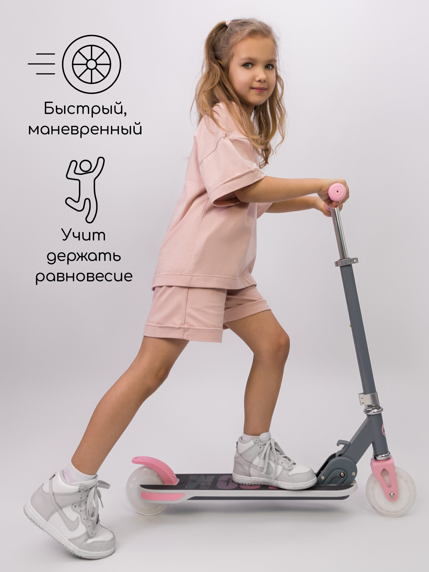 Самокат детский трехколесный COMIRON Yeenot "Зверята", регулируемая складная ручка, светящиеся колеса 110 и 75 мм, нагрузка до 40 кг, розовый / 1 шт.