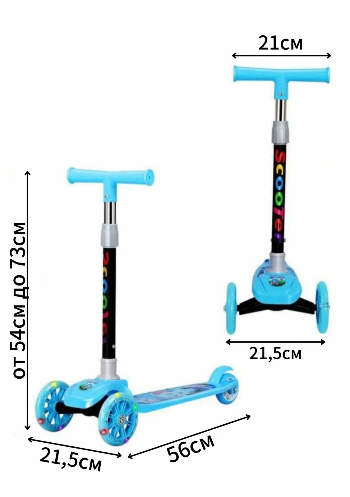 Самокат детский трехколесный/ ScooTer/ Складная ручка, светящиеся колеса / Синий интересное: