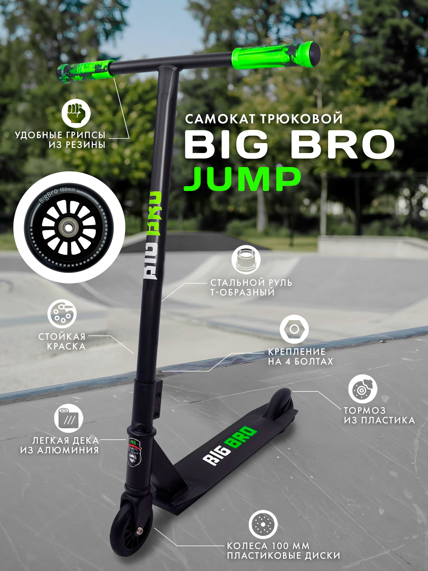 Трюковой самокат BIG BRO "JUMP II" ABEC7, детский, черно-зеленый интересное: