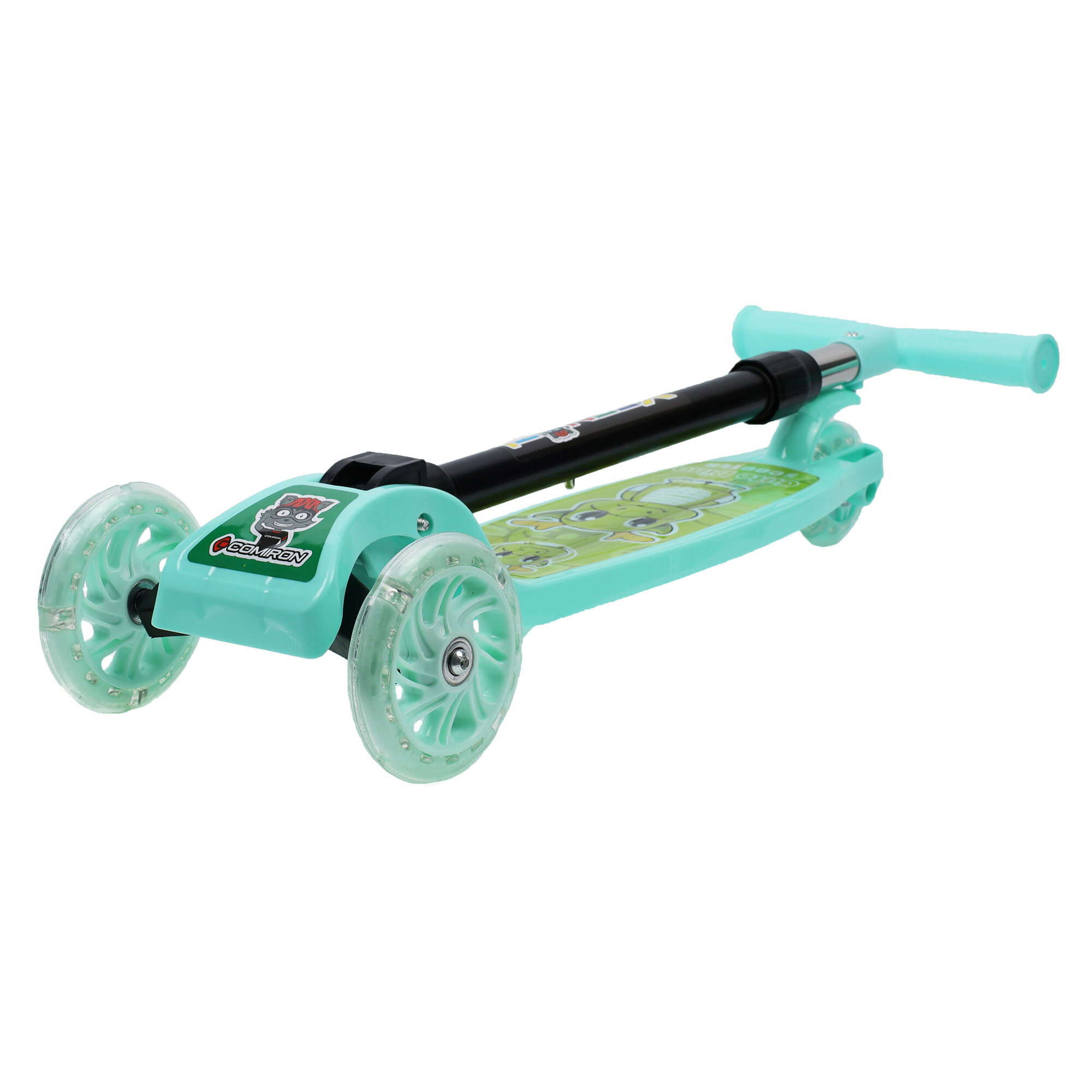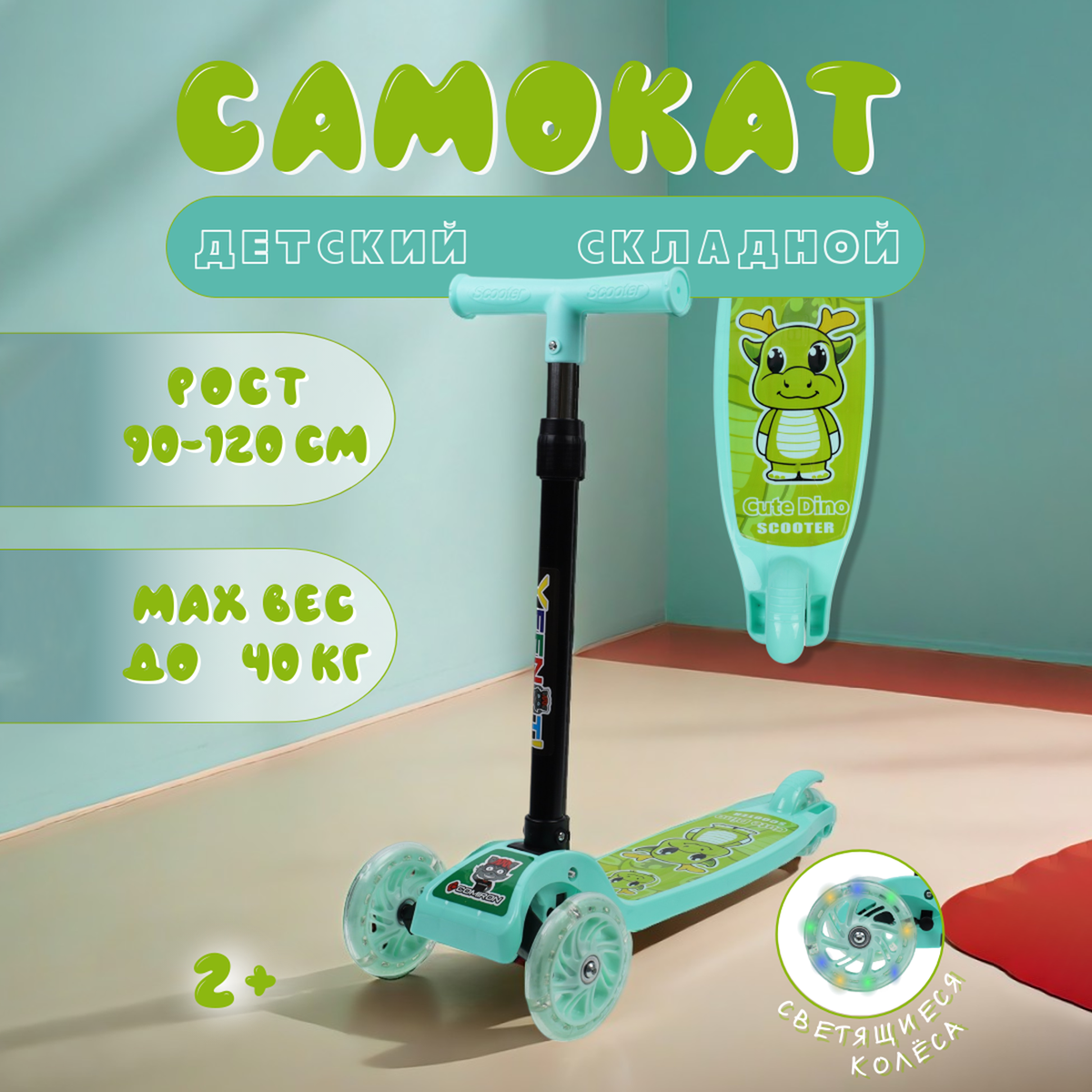 Купить Самокат детский трехколесный COMIRON Yeenot "Зверята", регулируемая складная ручка, светящиеся колеса 110 и 75 мм, нагрузка до 40 кг, зеленый / 1 шт.
