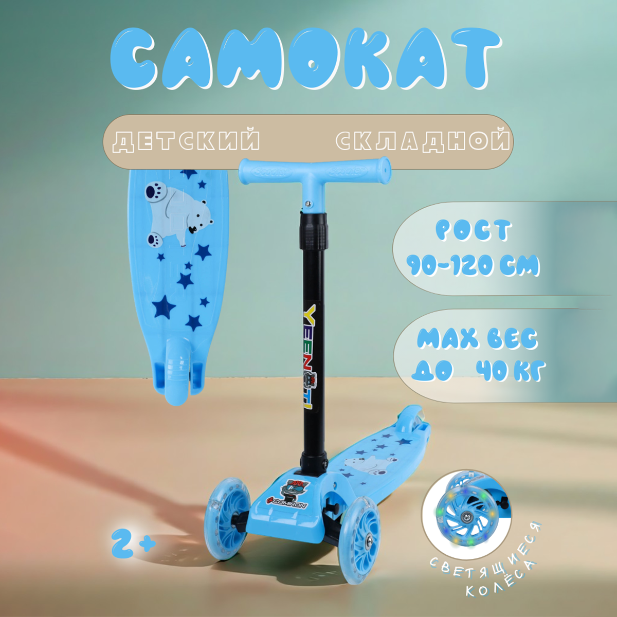 СохранитьСамокат детский трехколесный COMIRON Yeenot "Зверята", регулируемая складная ручка, светящиеся колеса 110 и 75 мм, нагрузка до 40 кг, светло-синий / 1 шт. интересное: