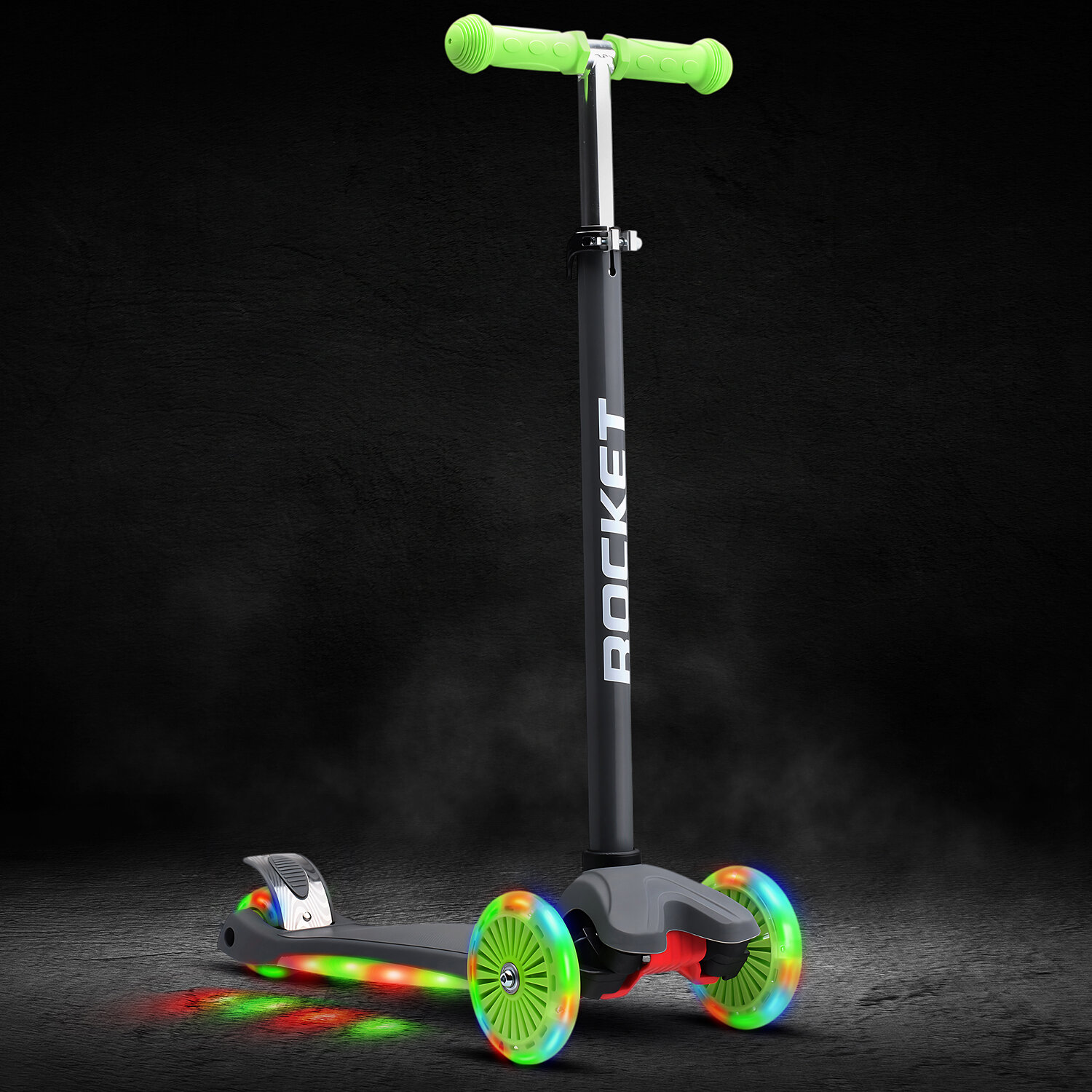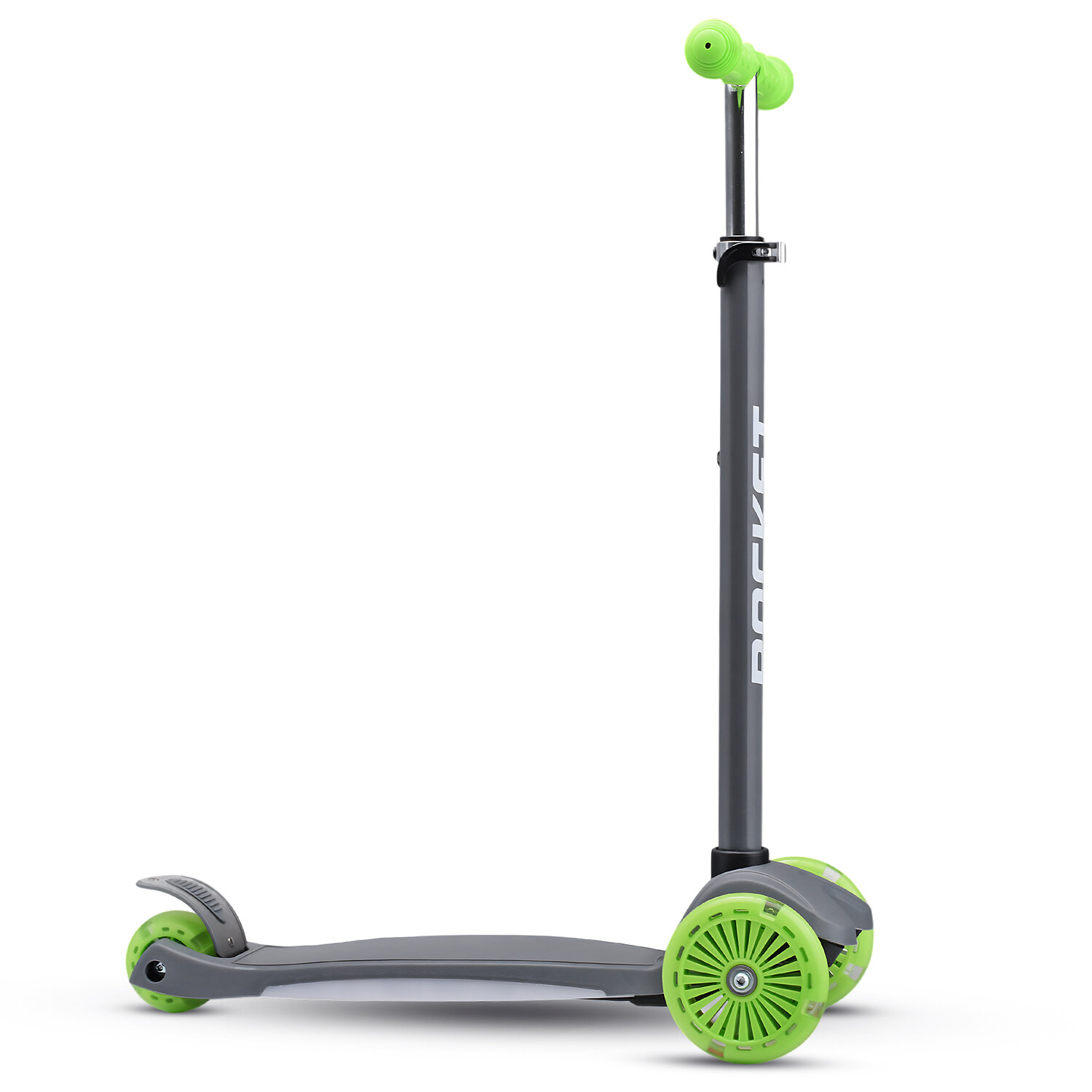Купить Самокат 3-х колесный детский ROCKET, колеса PU со светом, ABEC 7, светится дека, цвет серый