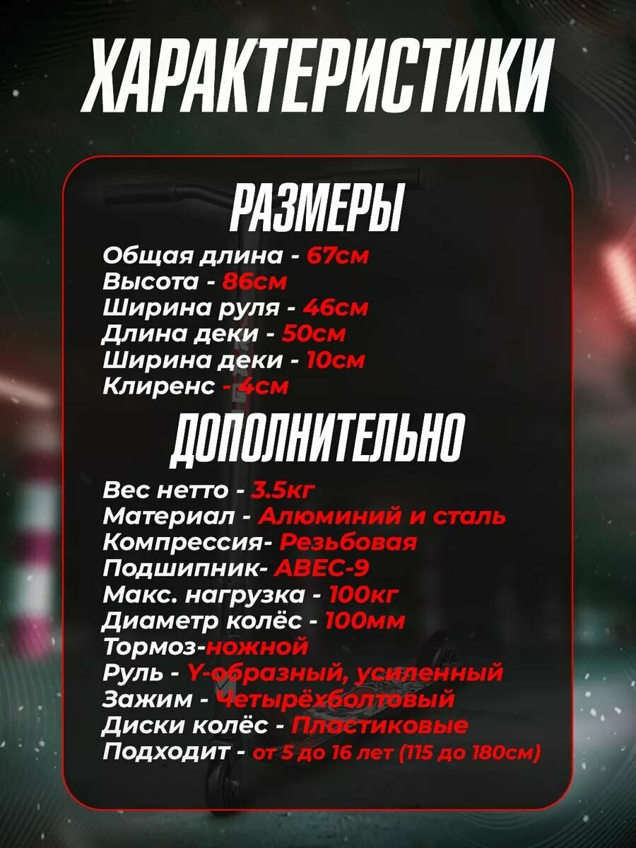 Облегченный трюковой самокат для детей/ колёса 100мм / подшипник ABEC-9 интересное:
