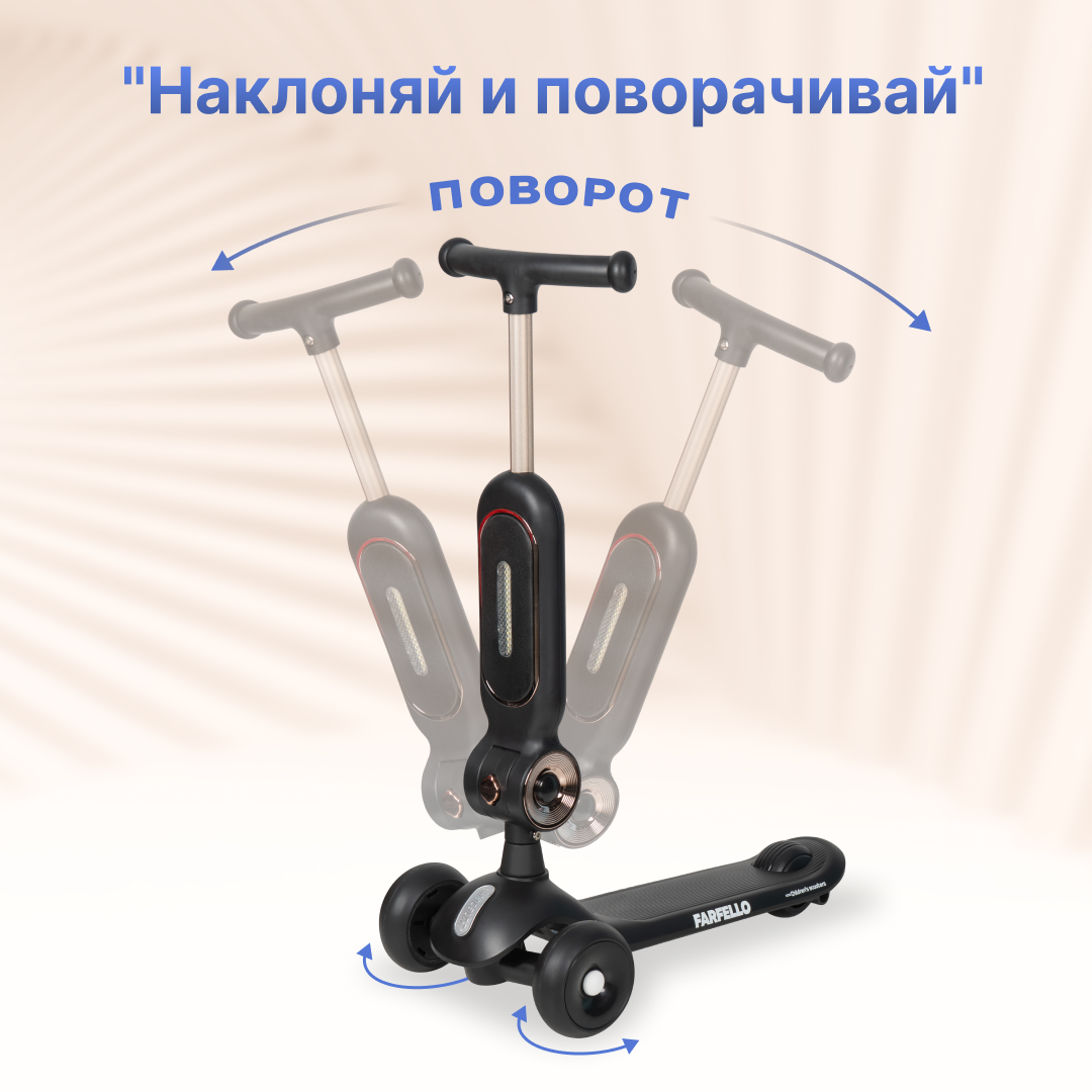 Самокат-трансформер Farfello A-7, трехколесный, складной, для детей, черный интересное: