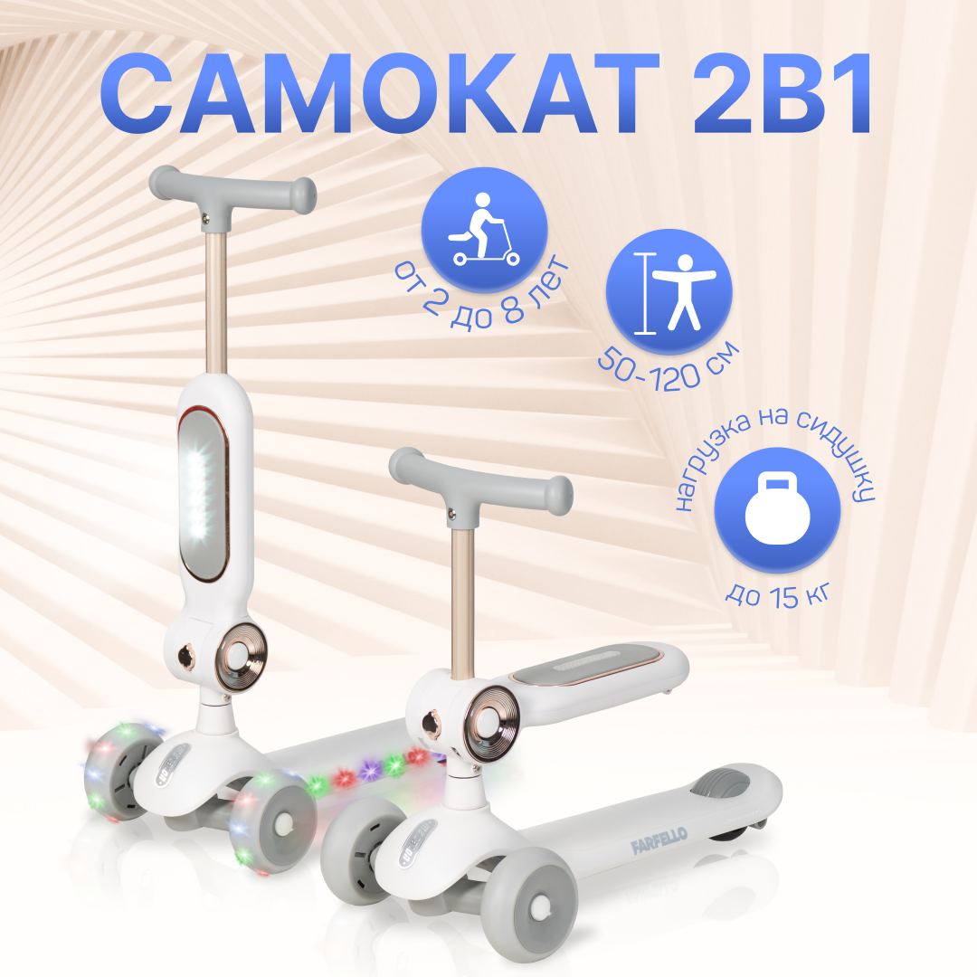 Самокат-трансформер Farfello A-7, трехколесный, складной, для детей, белый интересное: