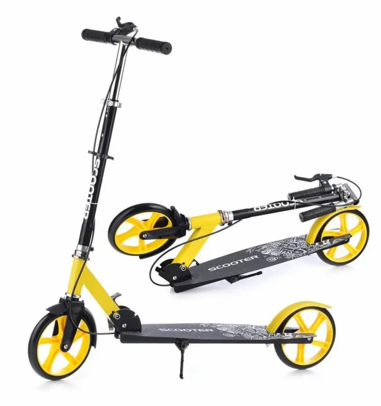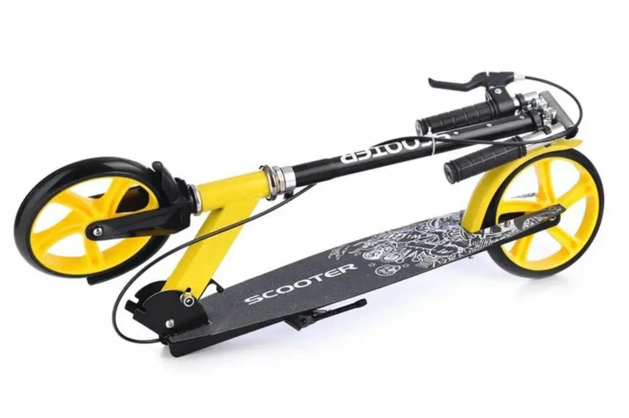 Купить Двухколесный самокат Scooter с ручным тормозом, колеса 200мм, складной, от 7 лет, желтый
