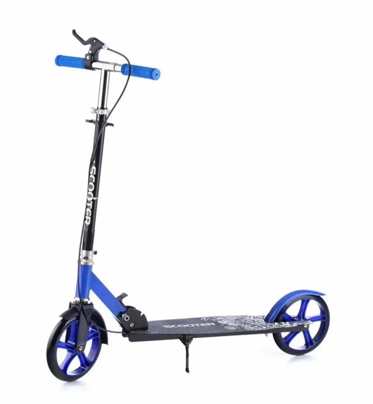Купить Двухколесный самокат Scooter с ручным тормозом, колеса 200мм, складной, от 7 лет, синий