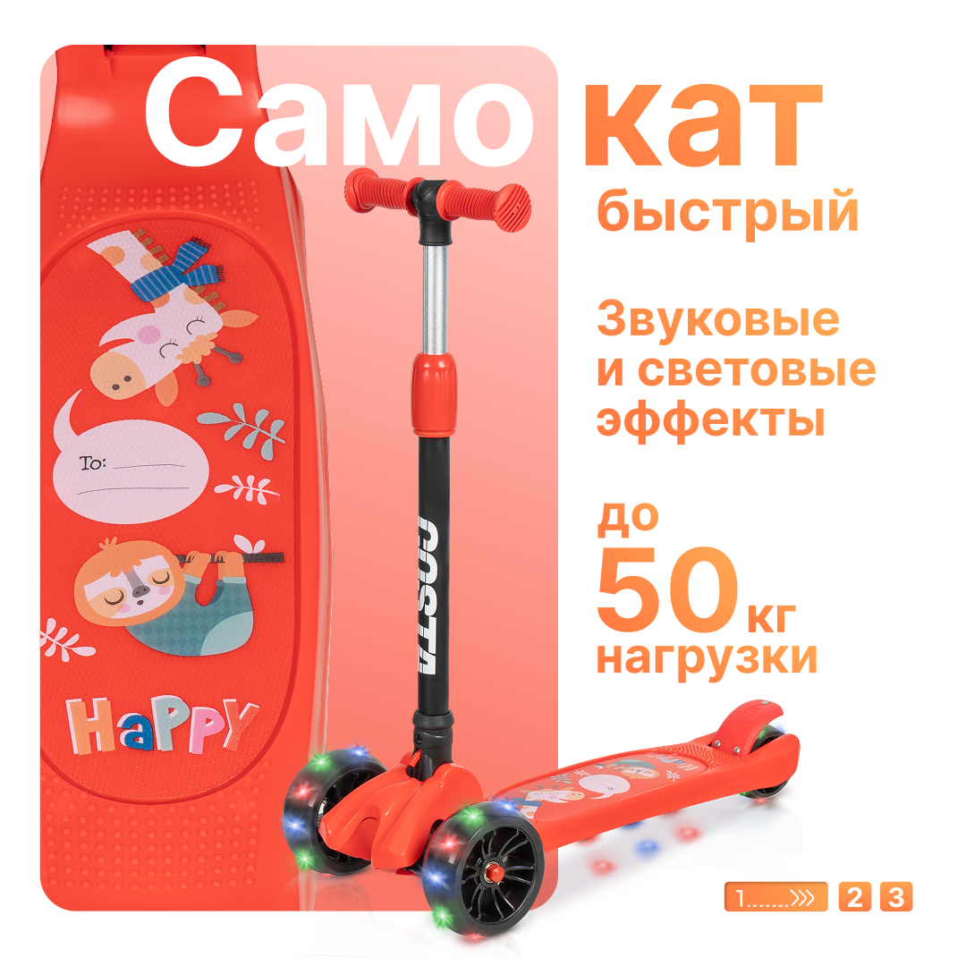 Самокат детский Costa FF252, трехколесный, складной, с регулировкой руля, с подсветкой, красный интересное: