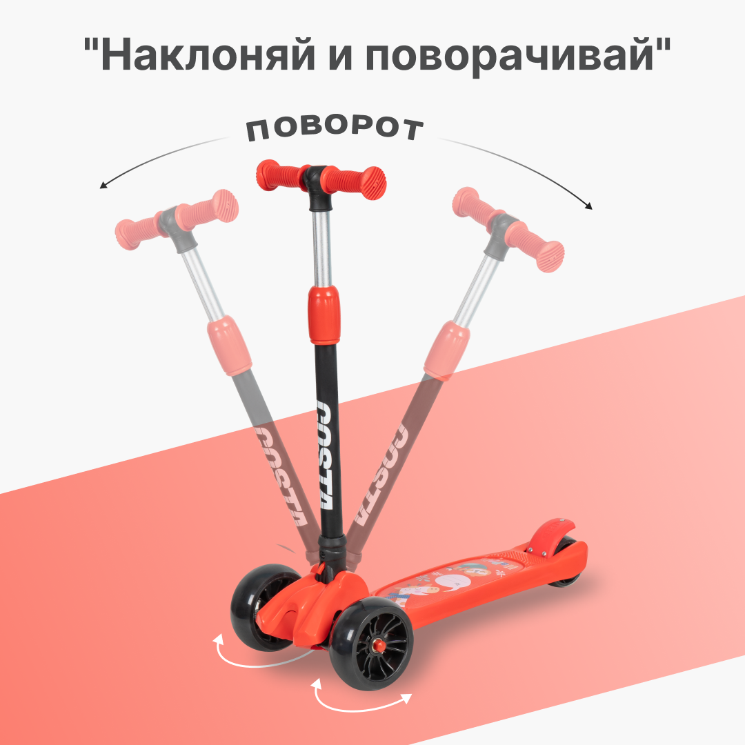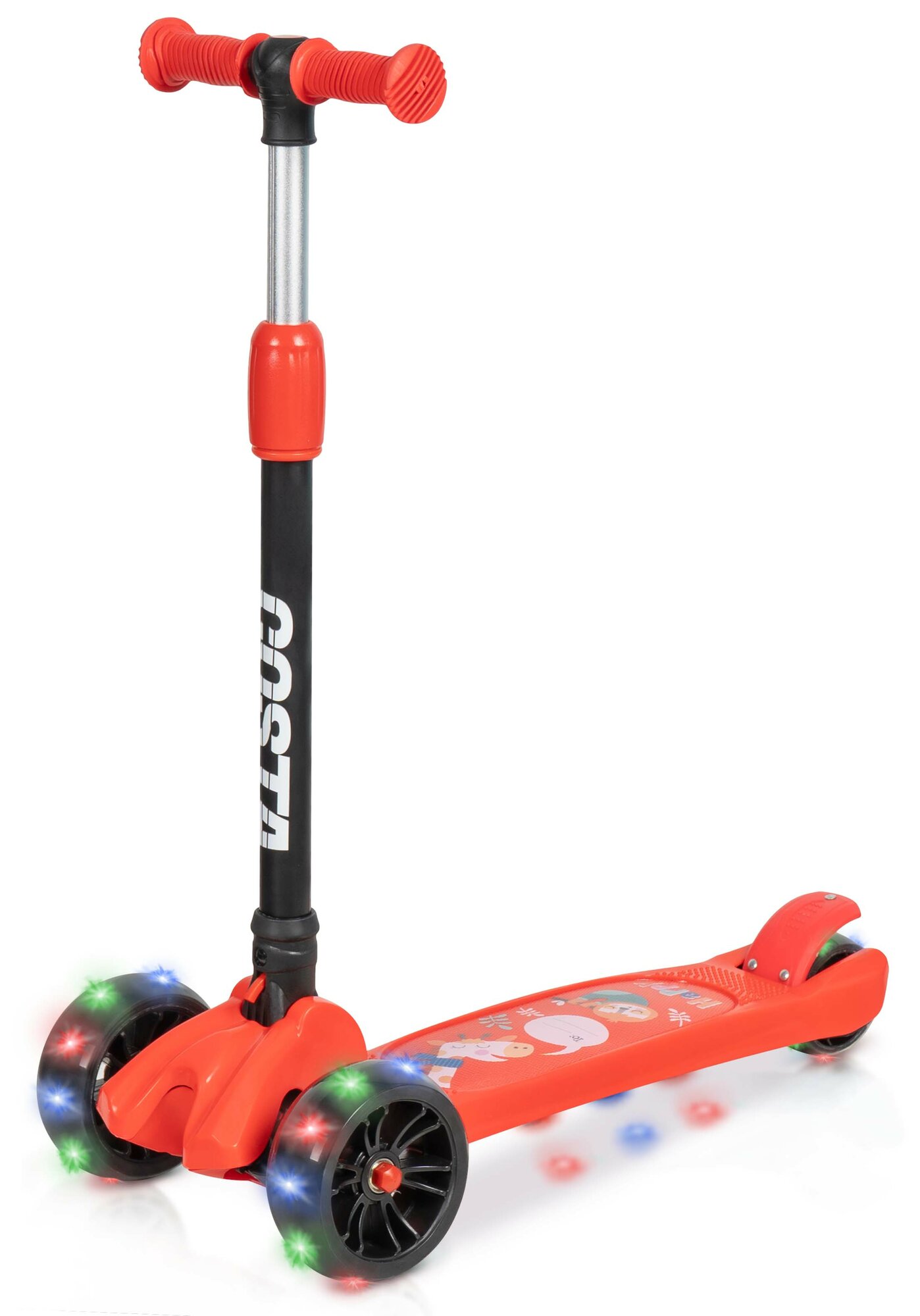 Купить Самокат детский Costa FF252, трехколесный, складной, с регулировкой руля, с подсветкой, красный
