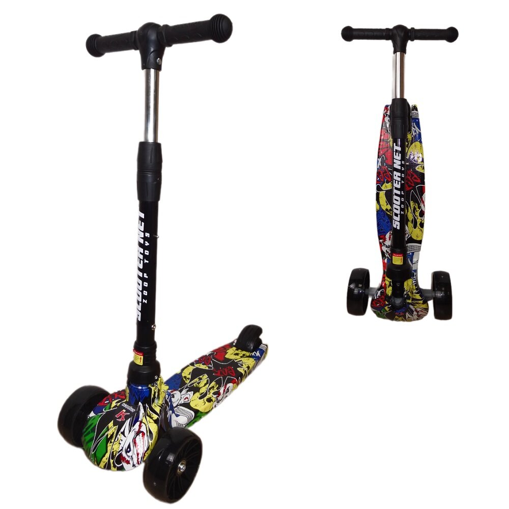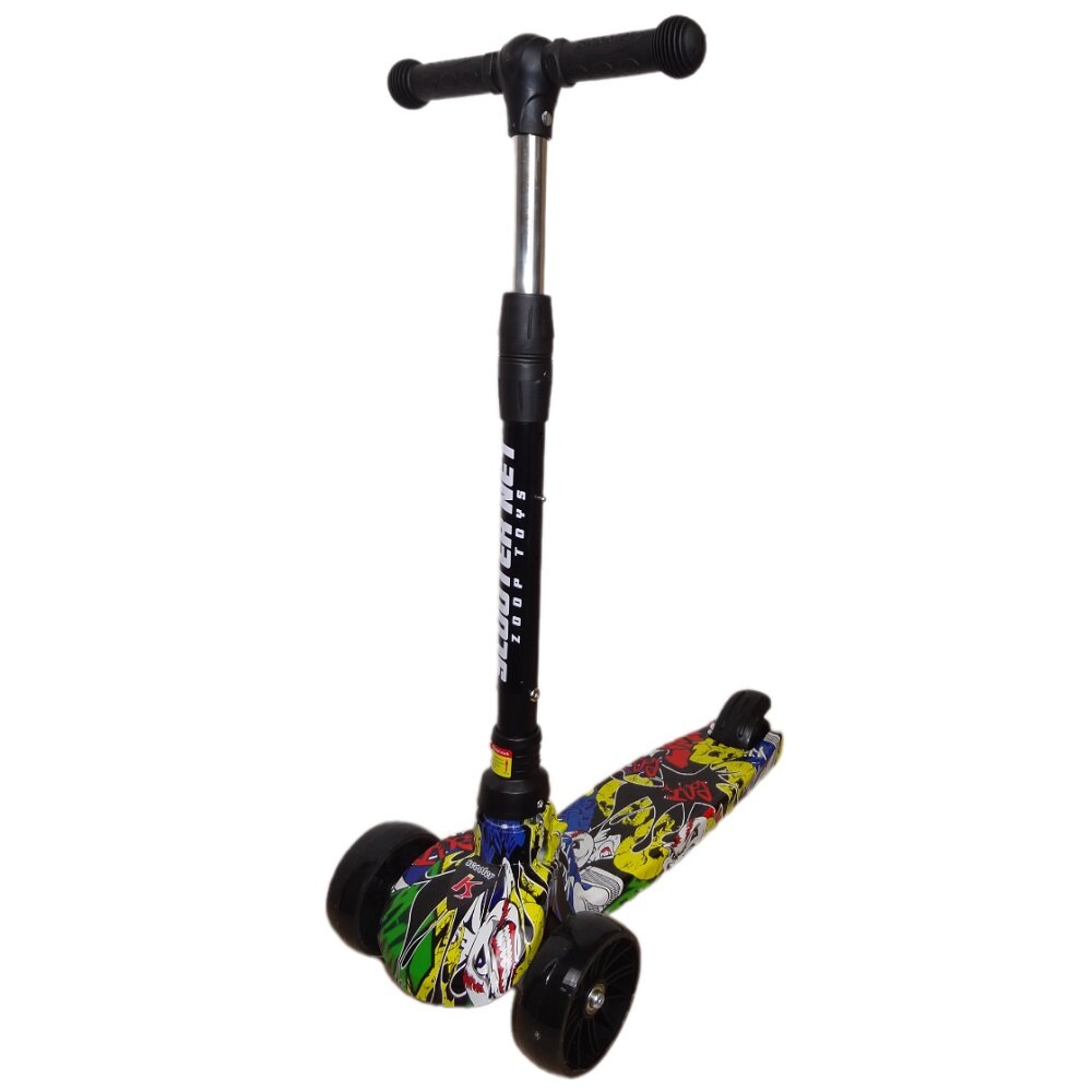 Купить Детский трехколесный самокат до 30 кг, PU колеса 75 - 100 мм, высота ручки 67-77 см, светящиеся колеса и платформа, музыка