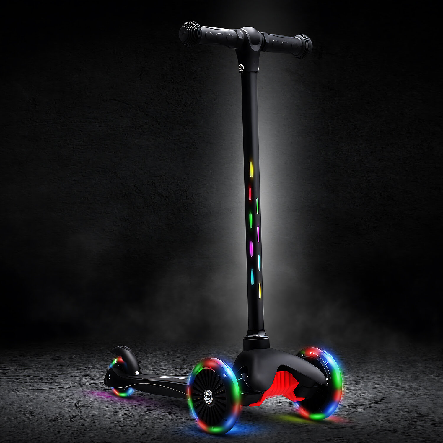 Купить Самокат трехколесный детский ROCKET, колеса PU со светом, светящаяся рулевая стойка, ABEC 7, цвет черный