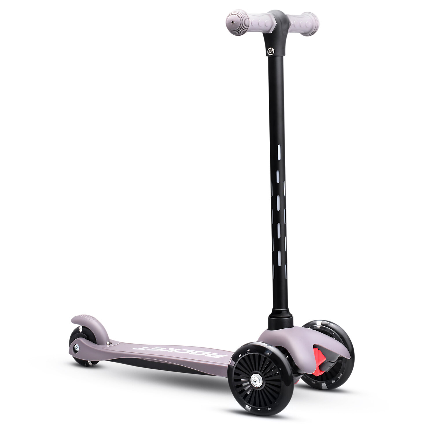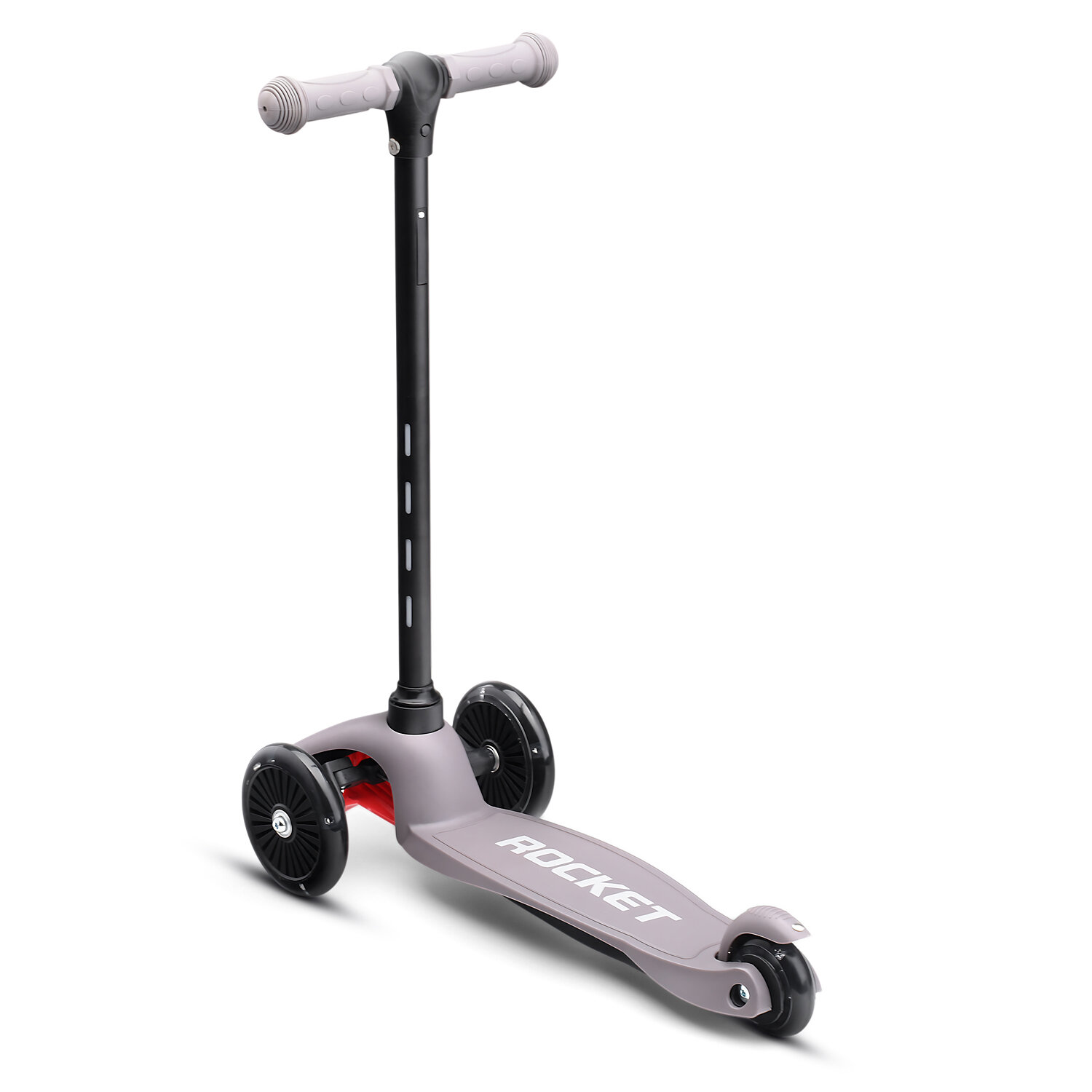 Купить Самокат трехколесный детский ROCKET, колеса PU со светом, светящаяся рулевая стойка, ABEC 7, цвет серый