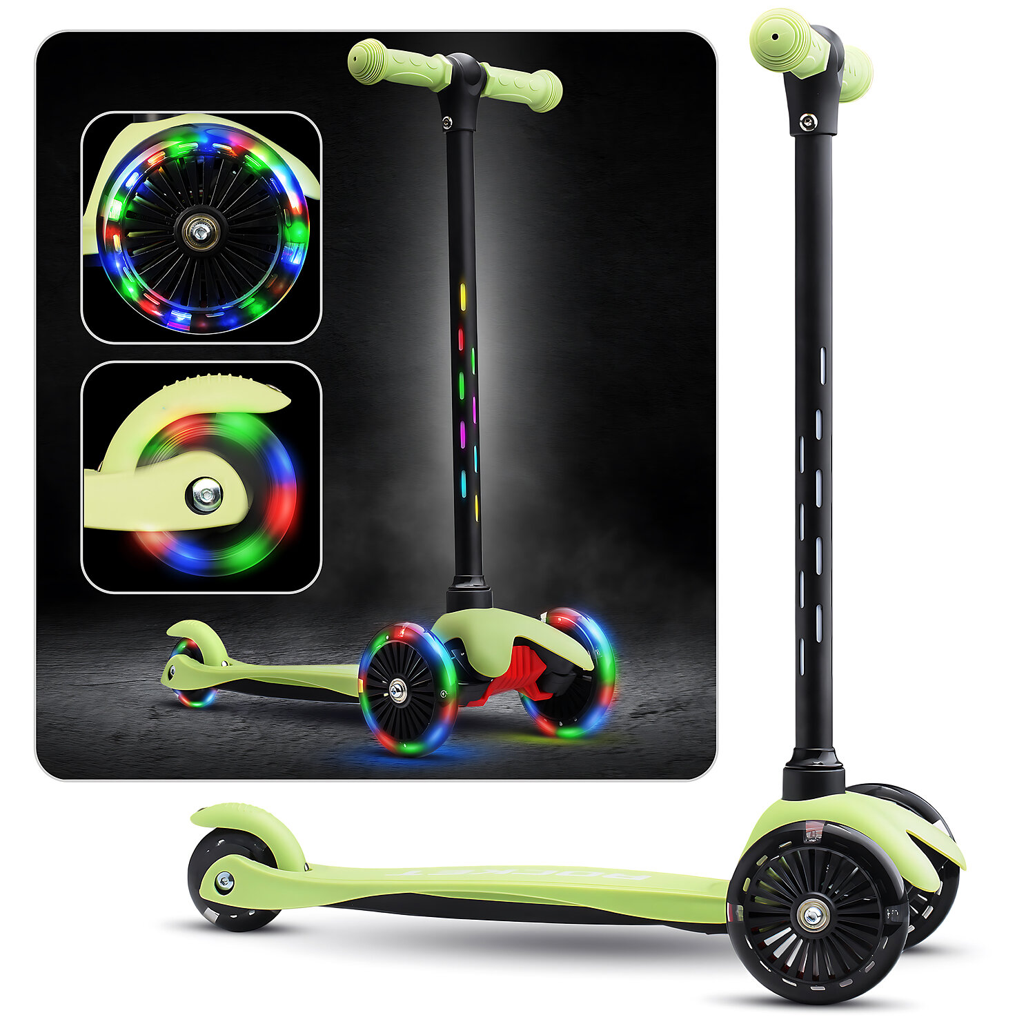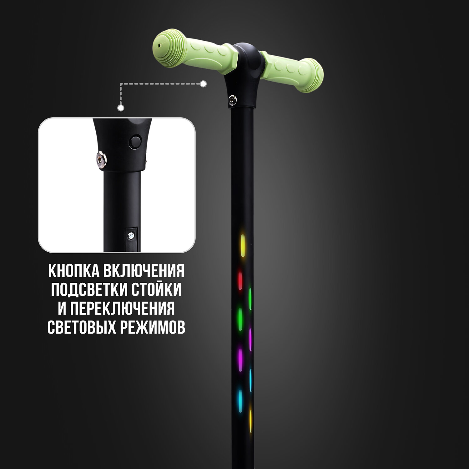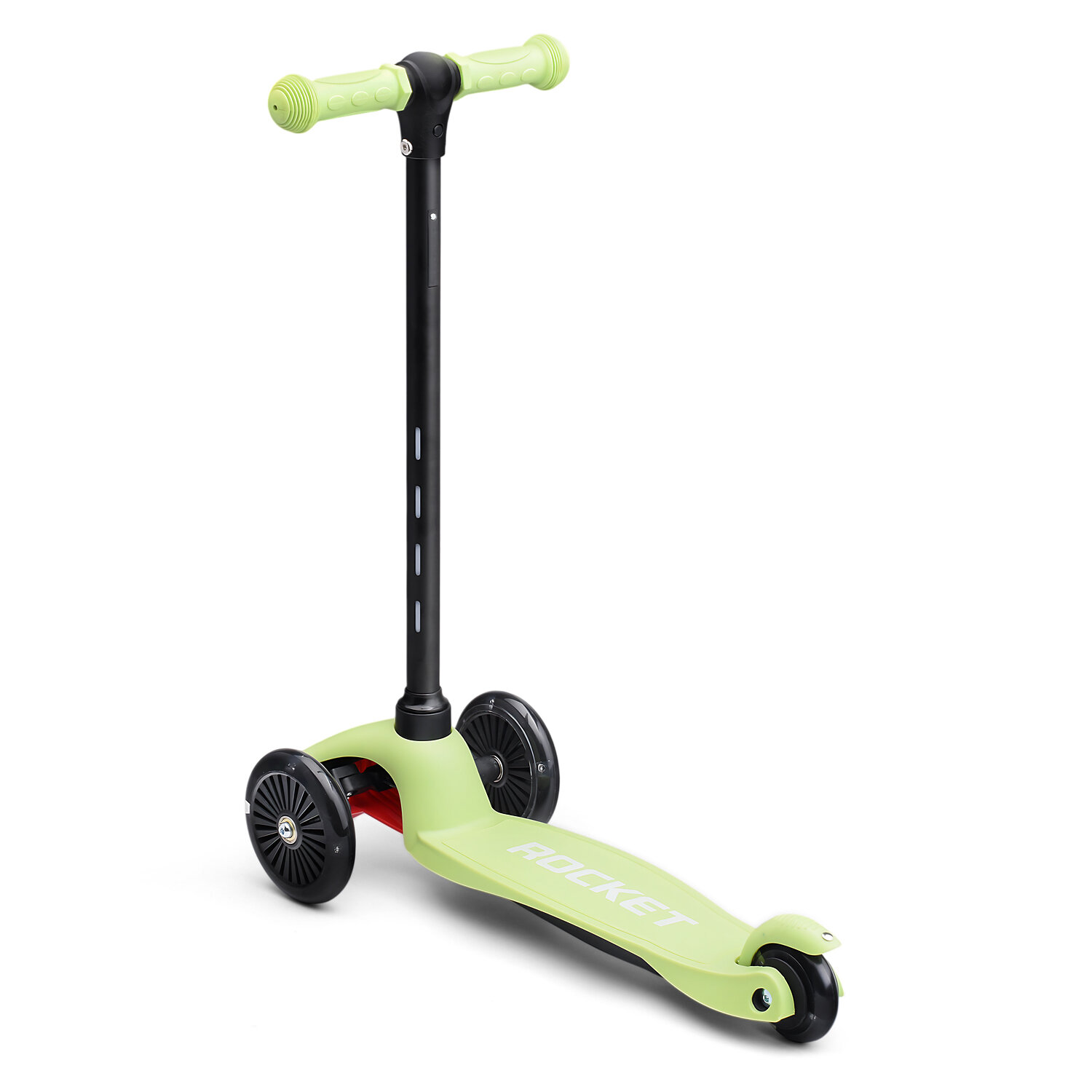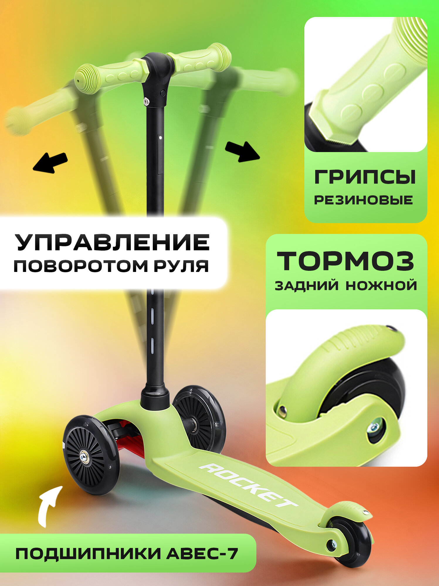 Купить Самокат трехколесный детский ROCKET, колеса PU со светом, светящаяся рулевая стойка, ABEC 7, цвет зеленый