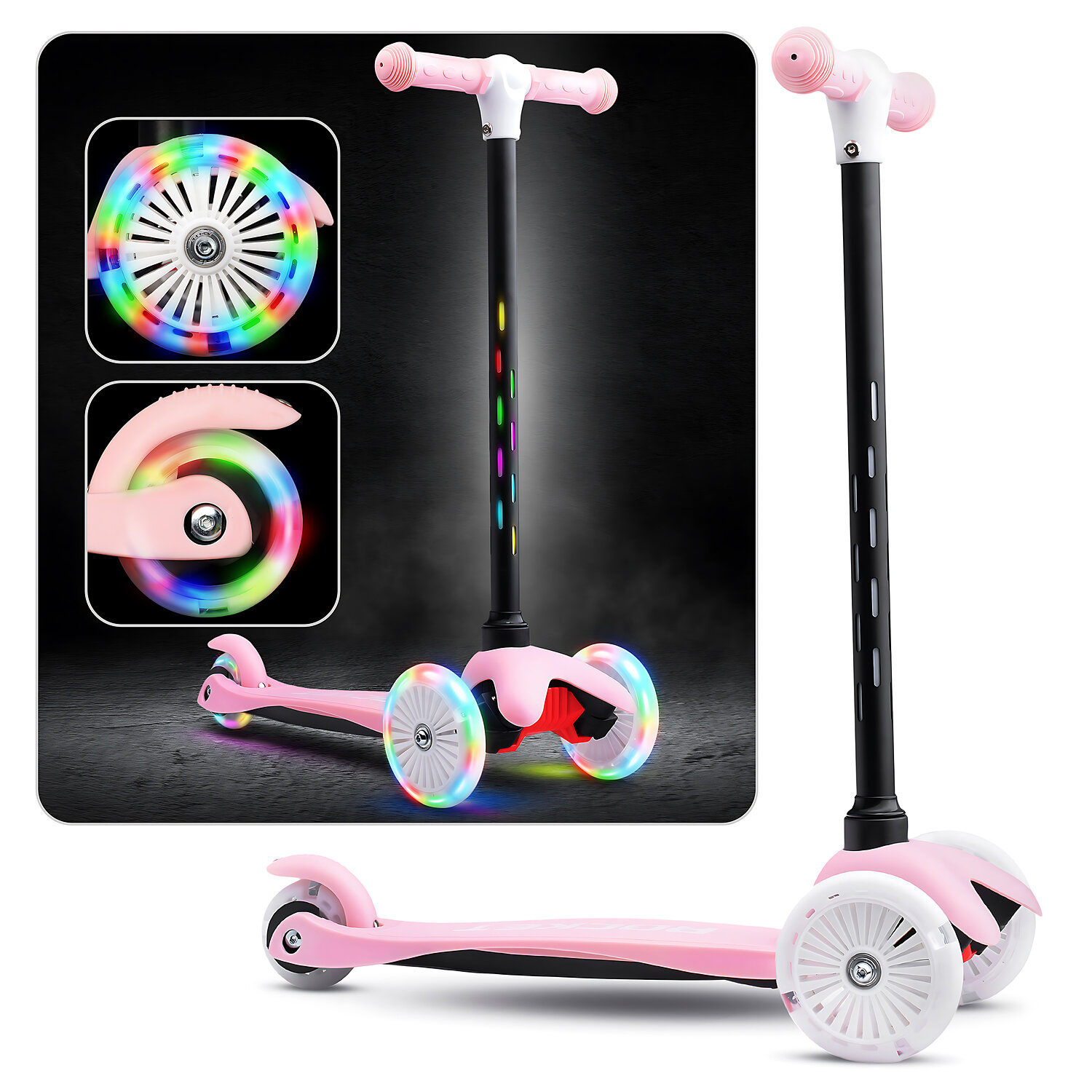 Самокат детский трехколесный COMIRON Yeenot "Зверята", регулируемая складная ручка, светящиеся колеса 110 и 75 мм, нагрузка до 40 кг, розовый / 1 шт.