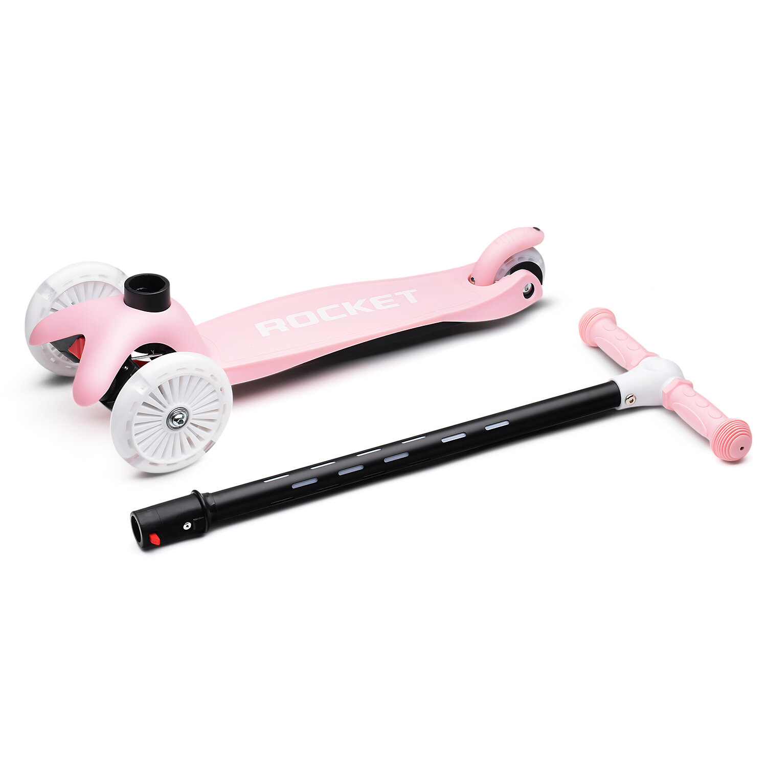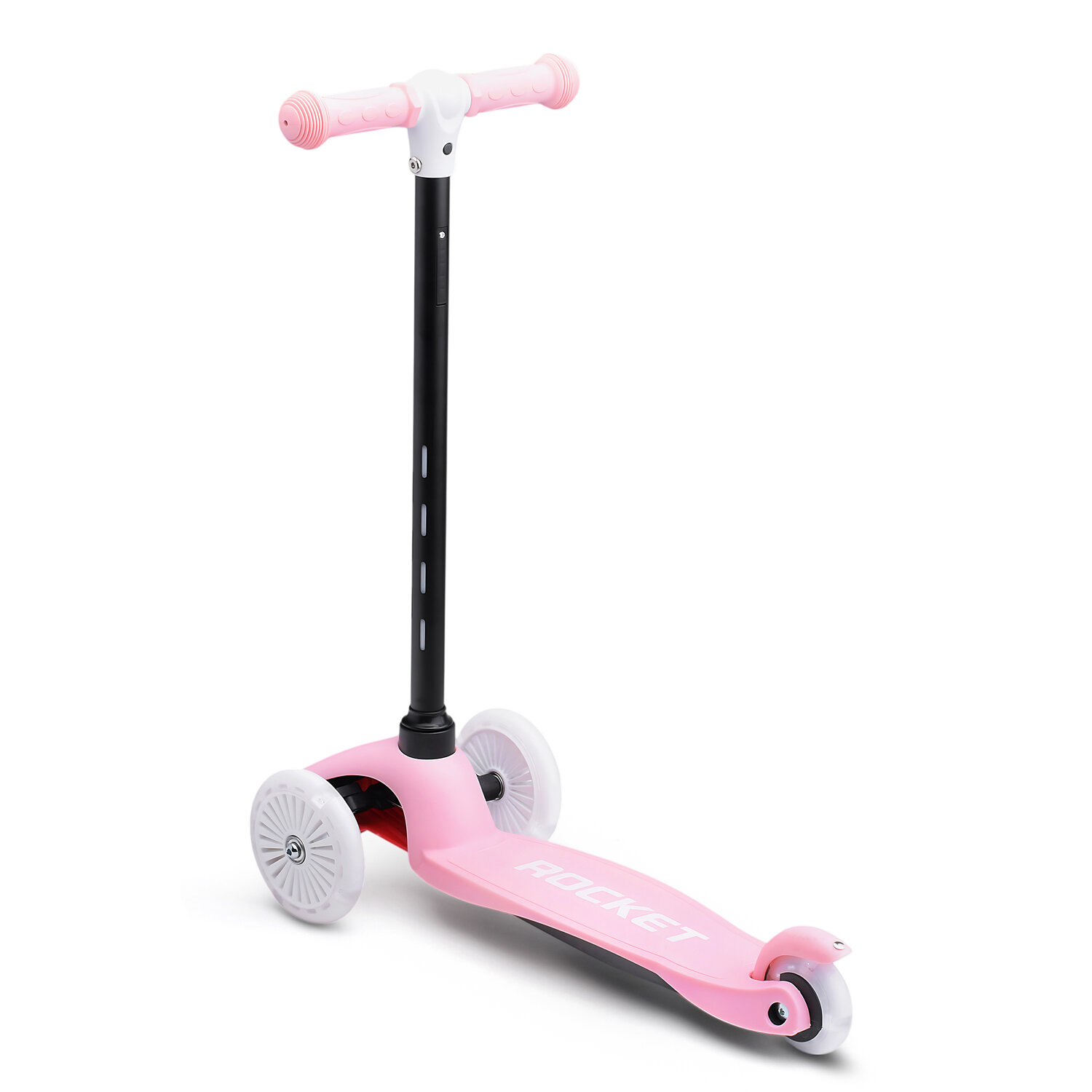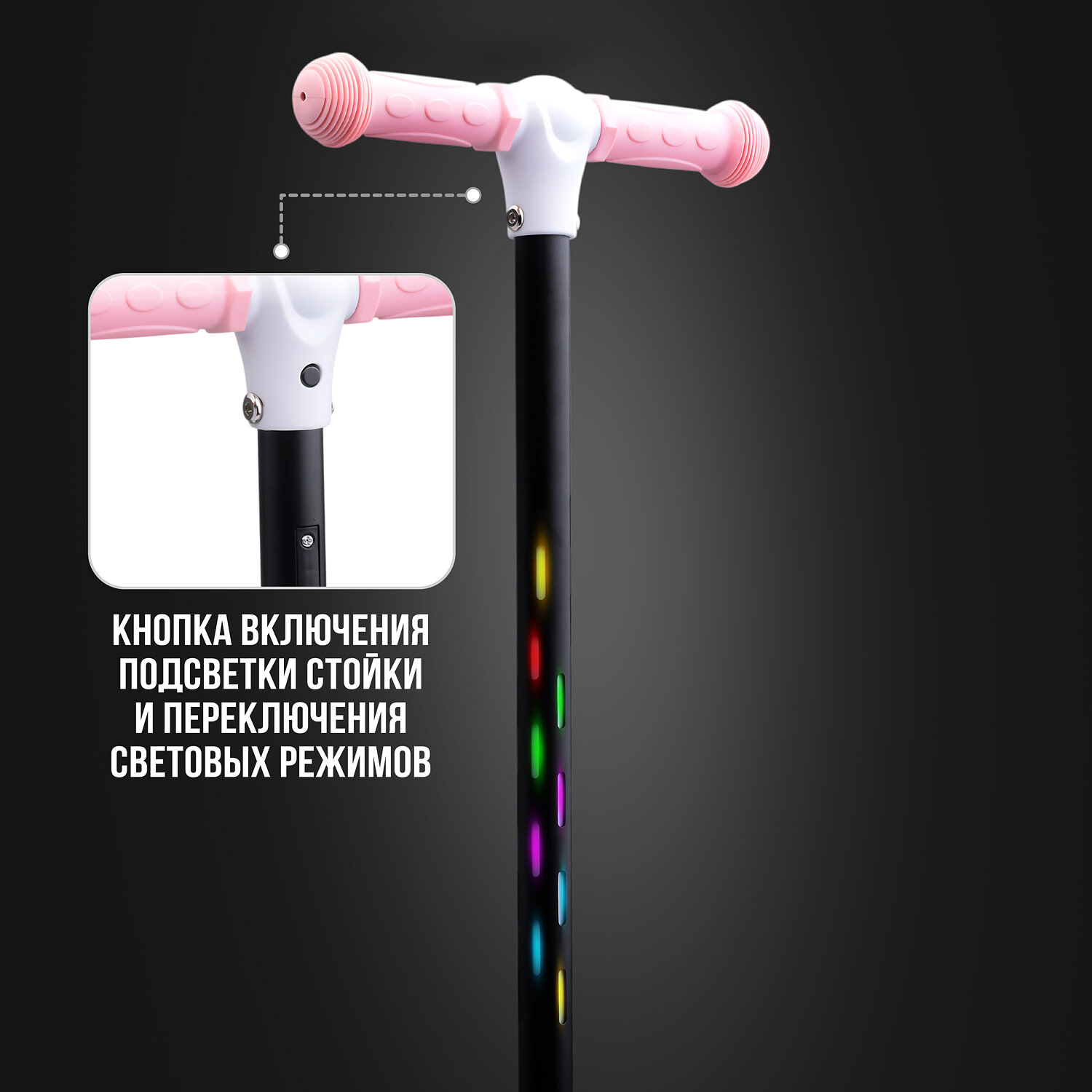 Купить Самокат трехколесный детский ROCKET, колеса PU со светом, светящаяся рулевая стойка, ABEC 7, цвет розовый