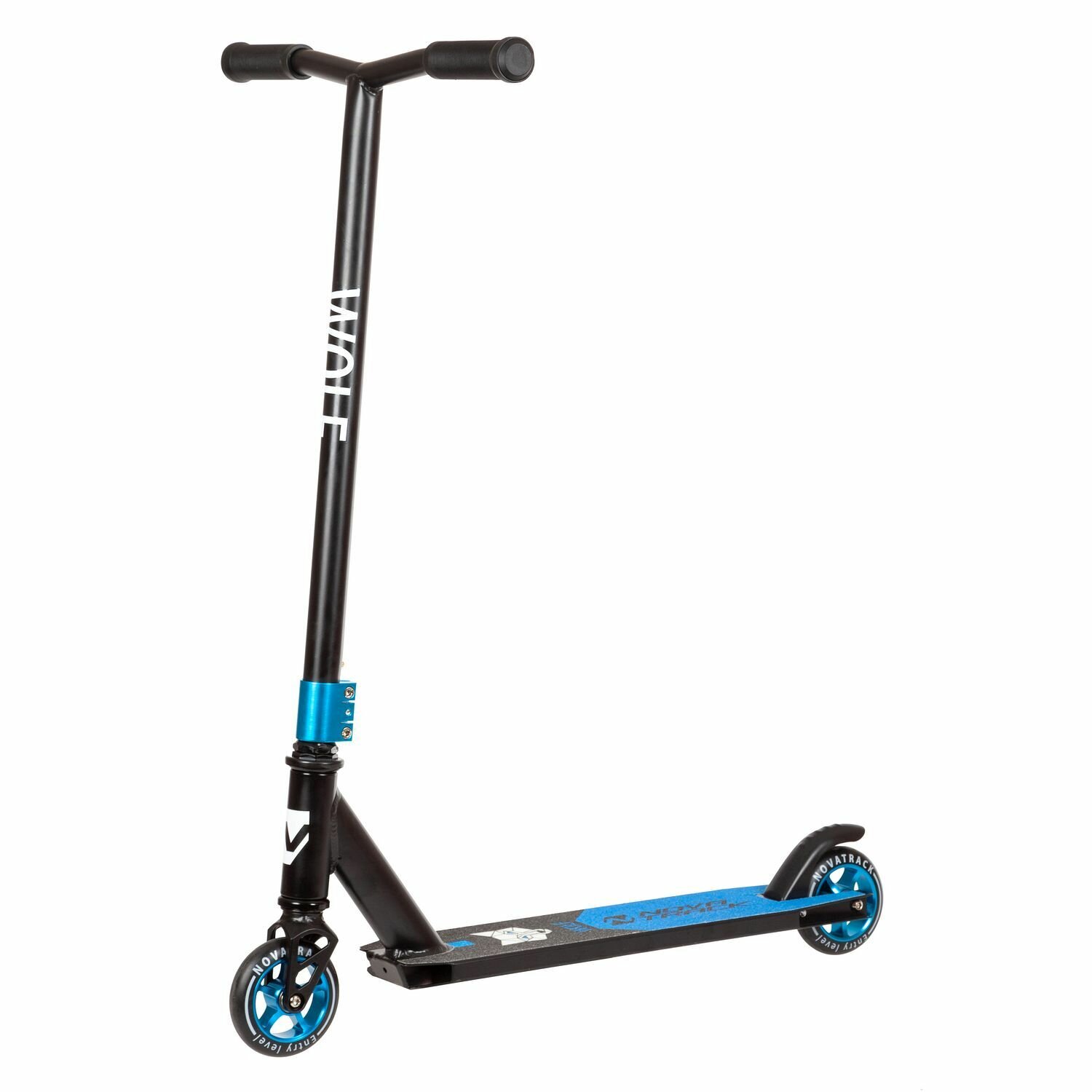Купить Самокат трюковый NOVATRACK WOLF'30, PU колеса с алюмин. ободом, стальной руль, черно-синий.