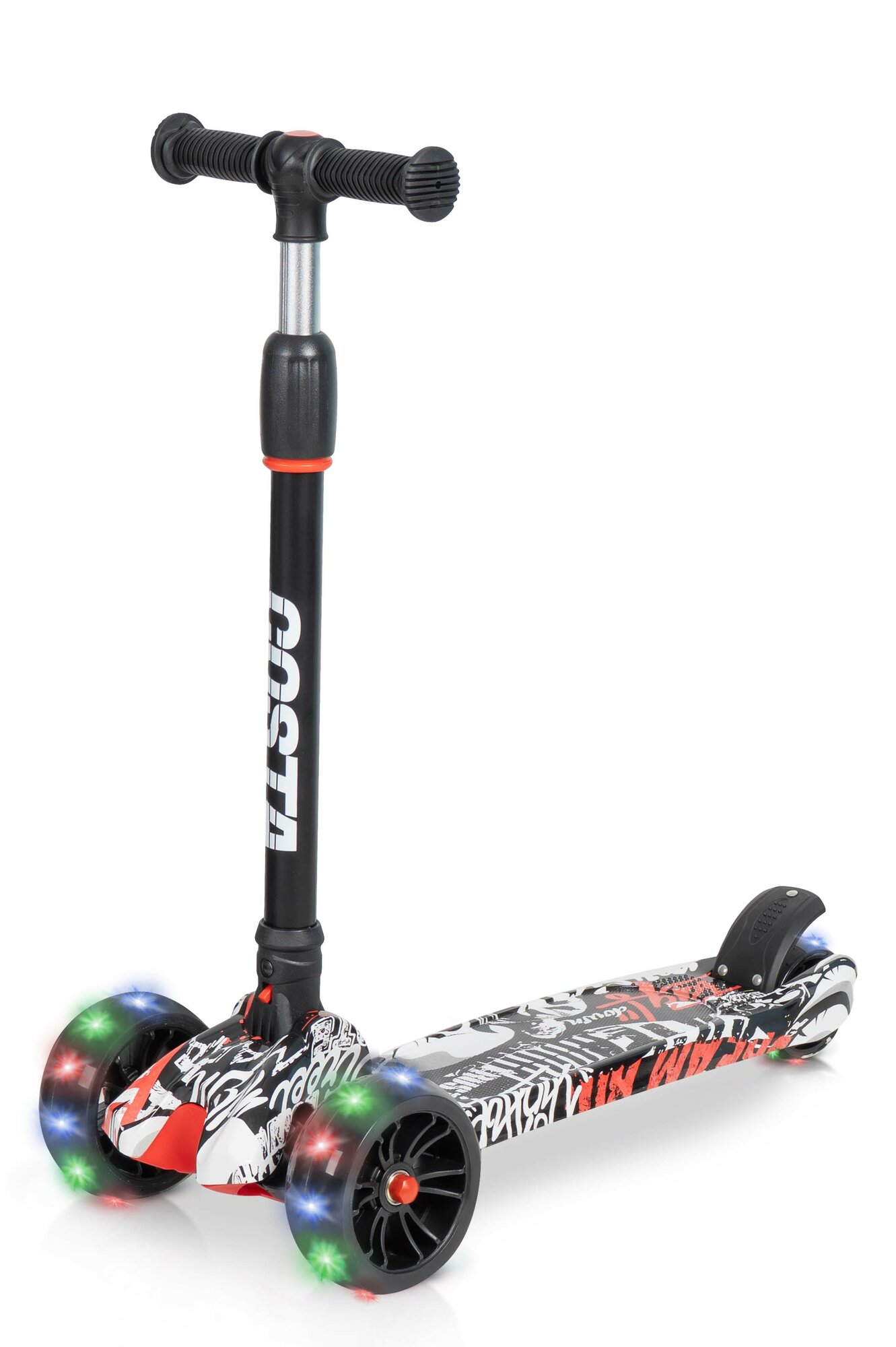 Самокат детский Costa FG11, для мальчиков и девочек, складной, с регулируемой высотой руля, граффити черный