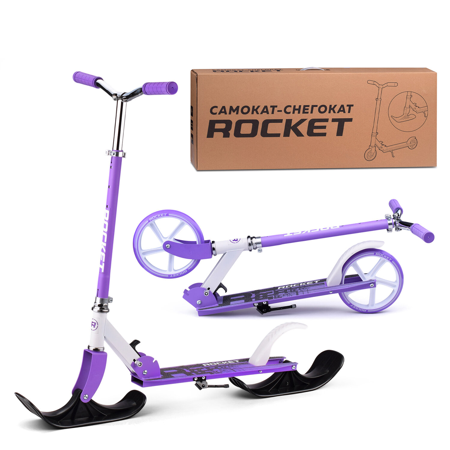 Самокат-снегокат ROCKET 2-в-1 от 6 до 14 лет Фиолетовый,86 х 46 х 99 см. интересное: