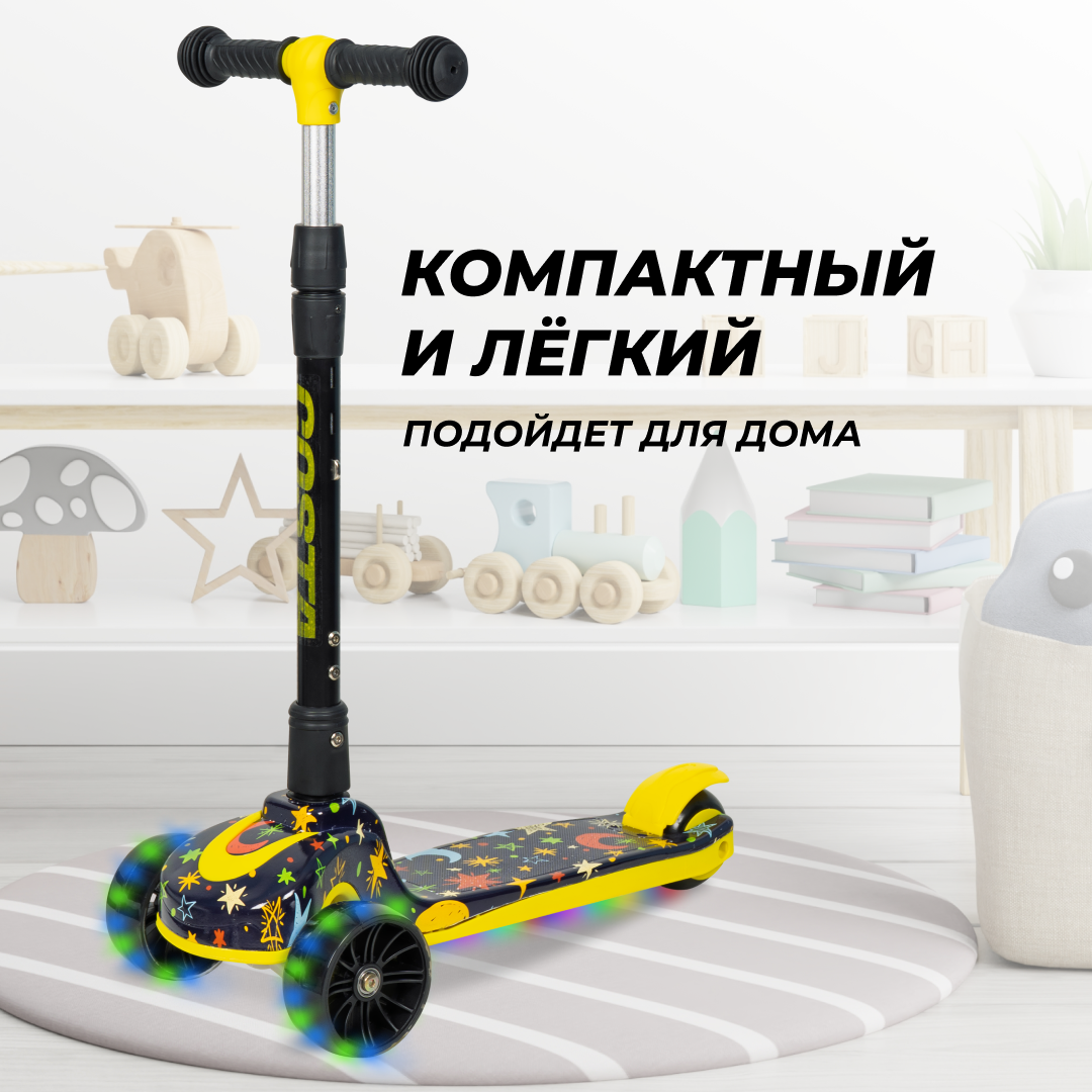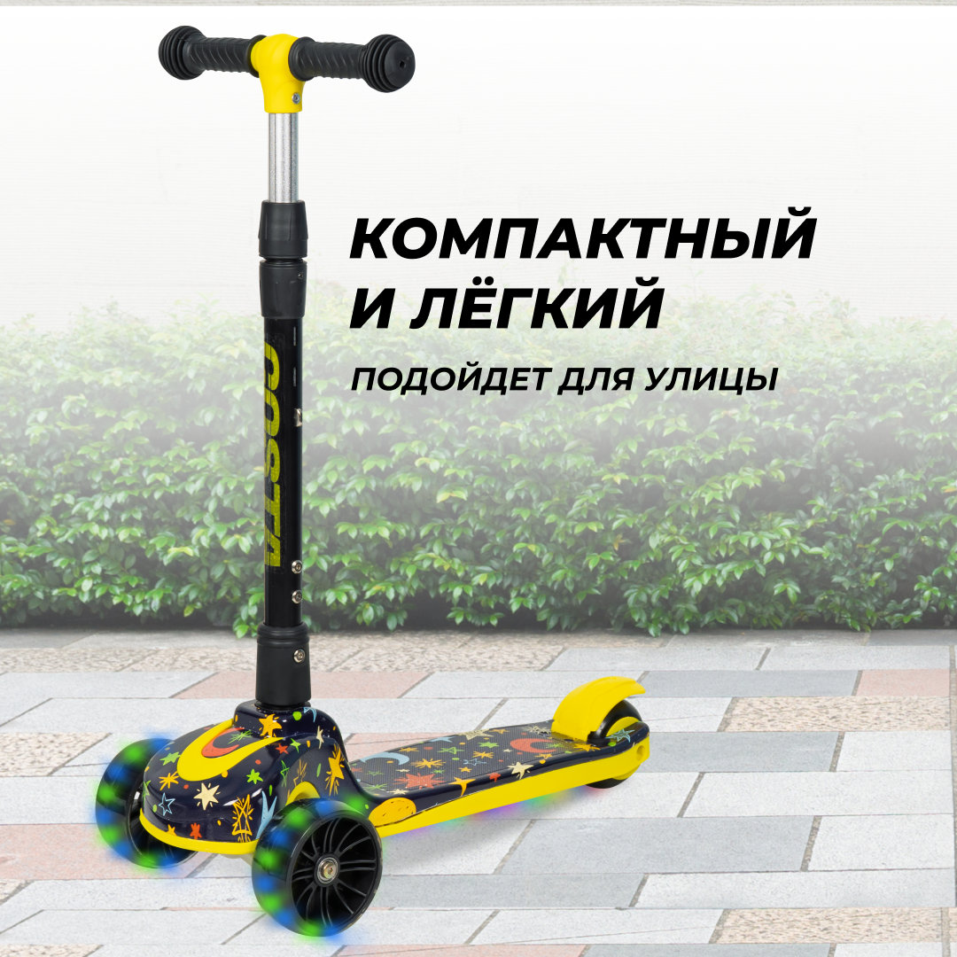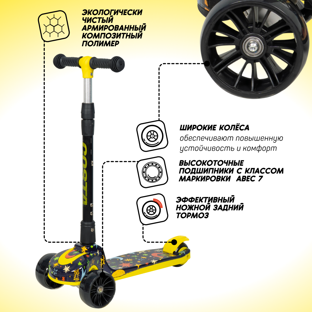 Самокат Costa AB-13, детский, трехколесный, со световыми эффектами, складная конструкция, желтый интересное: