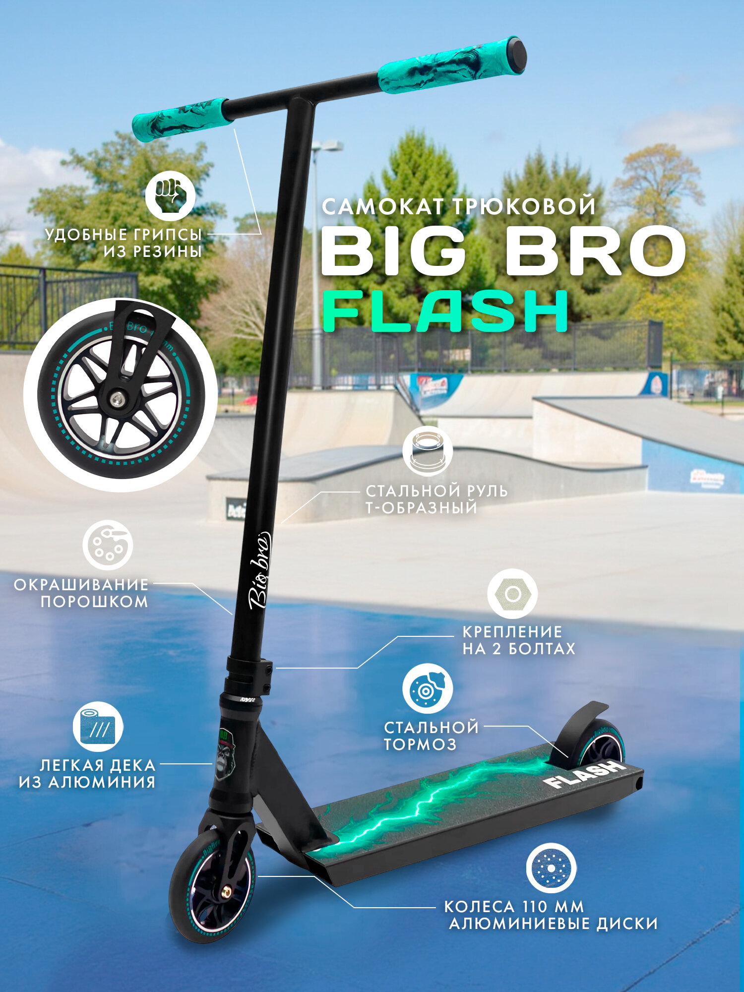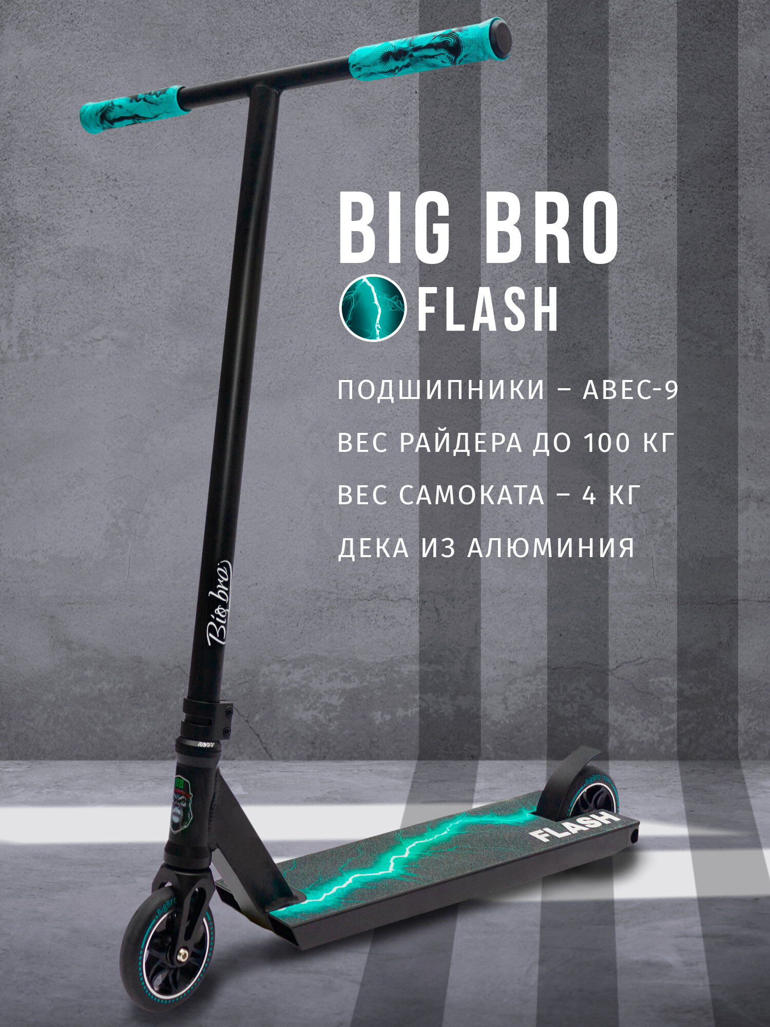 Купить Самокат BIG BRO "FLASH", трюковой, цельный, нагрузка до 100кг, ABEC-9, чёрный