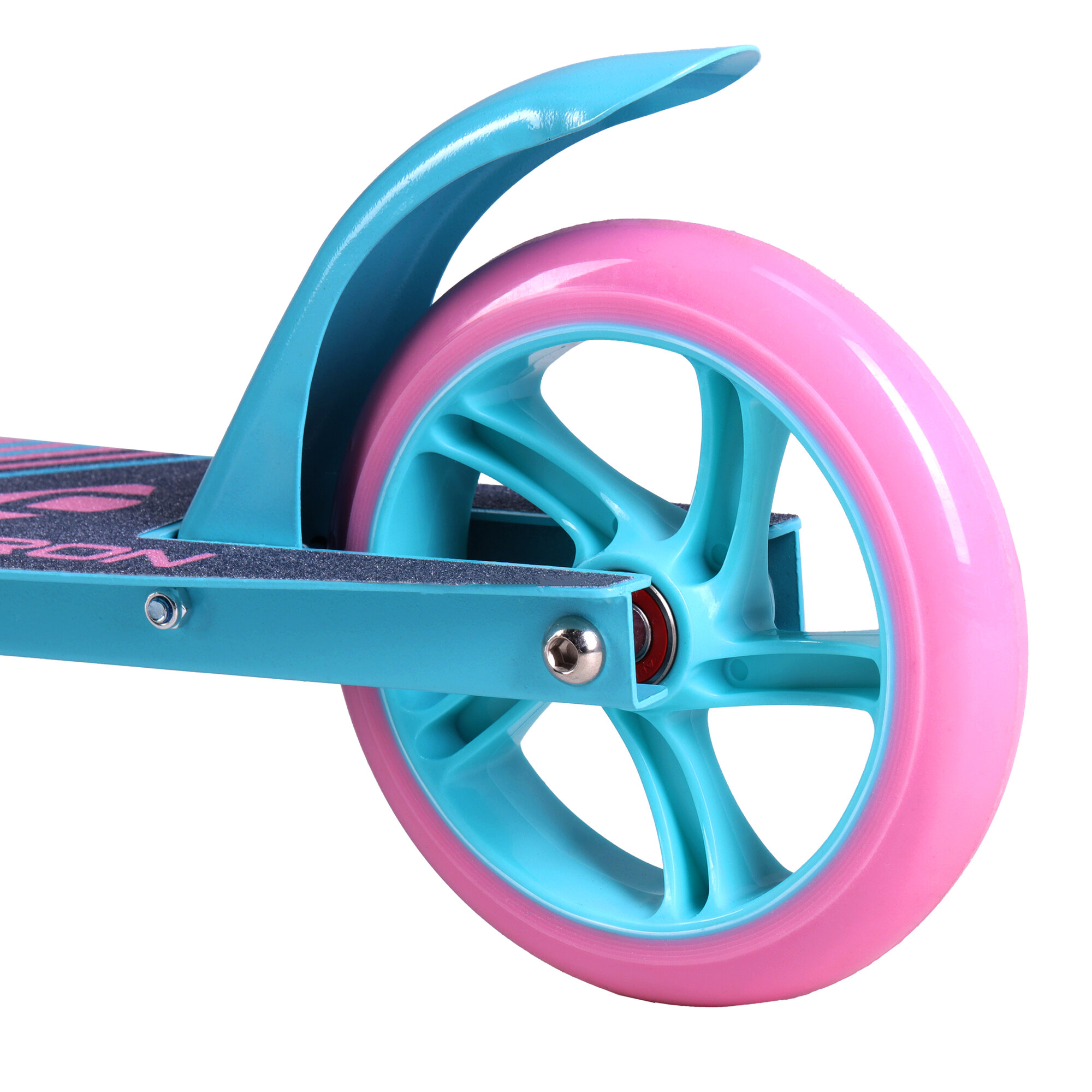 Купить Самокат двухколесный складной для девочки для мальчика детский COMIRON, колеса PU 145 мм, дека 510х120 мм, подножка, складной механизм, цвет розовый с бирюзовым / 1 шт.