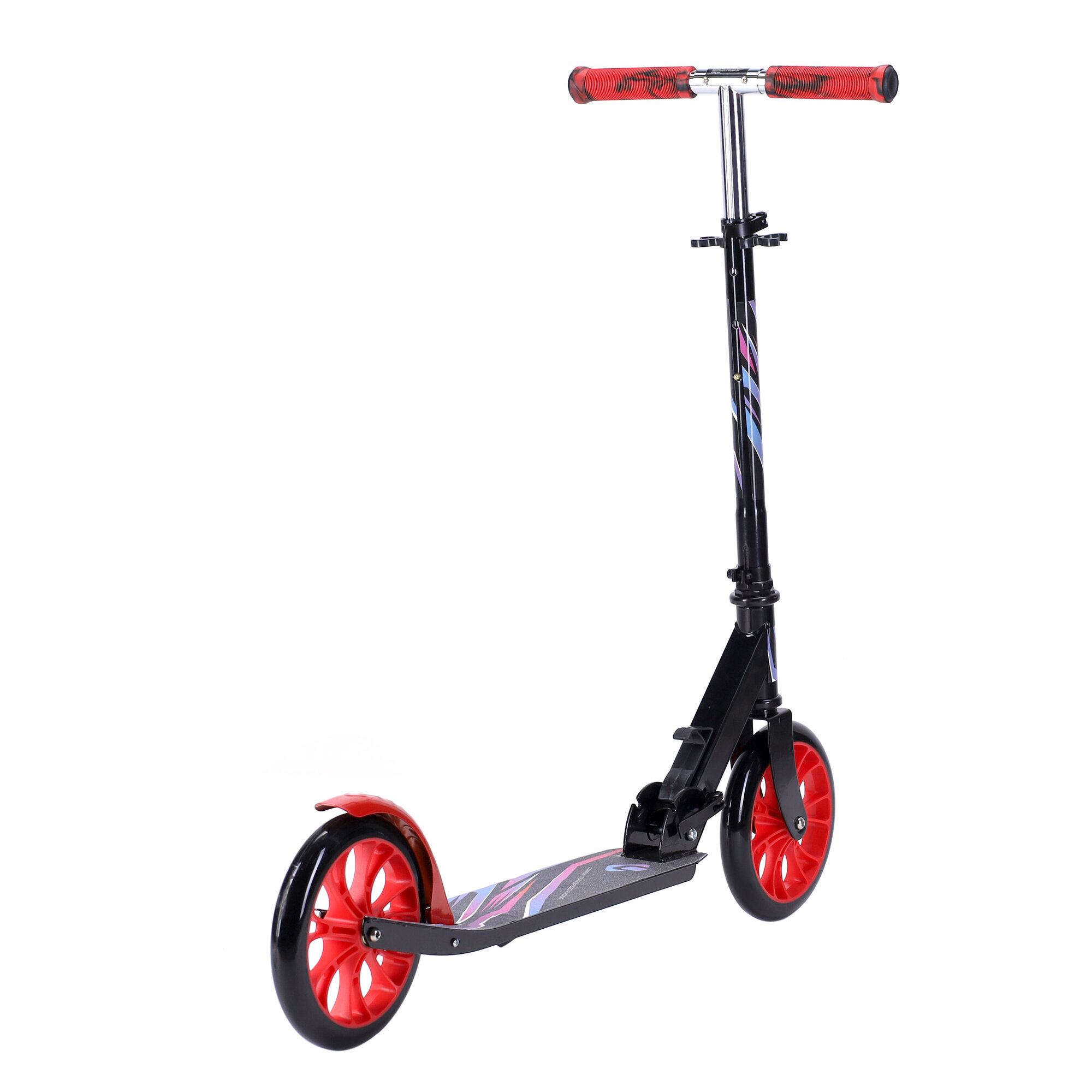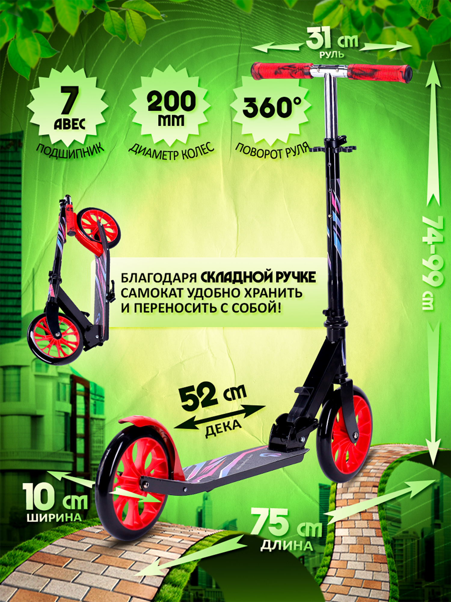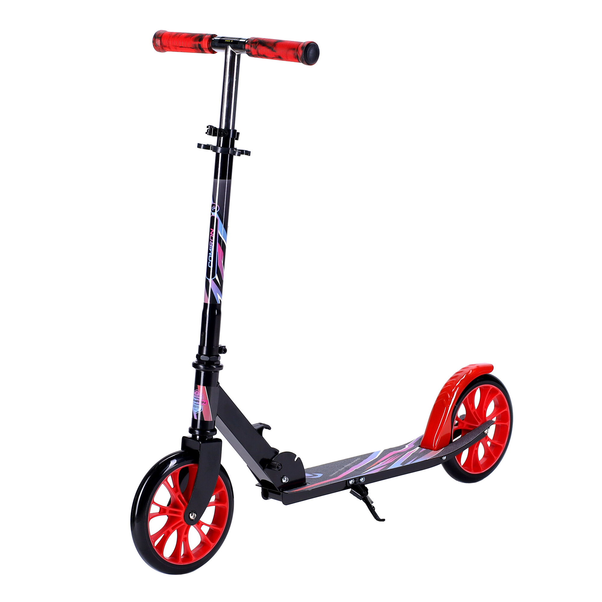 Самокат двухколесный складной для девочки для мальчика детский COMIRON "Race", колеса PU 200 мм, дека 520х100 мм, подножка, складной механизм / 1 шт.