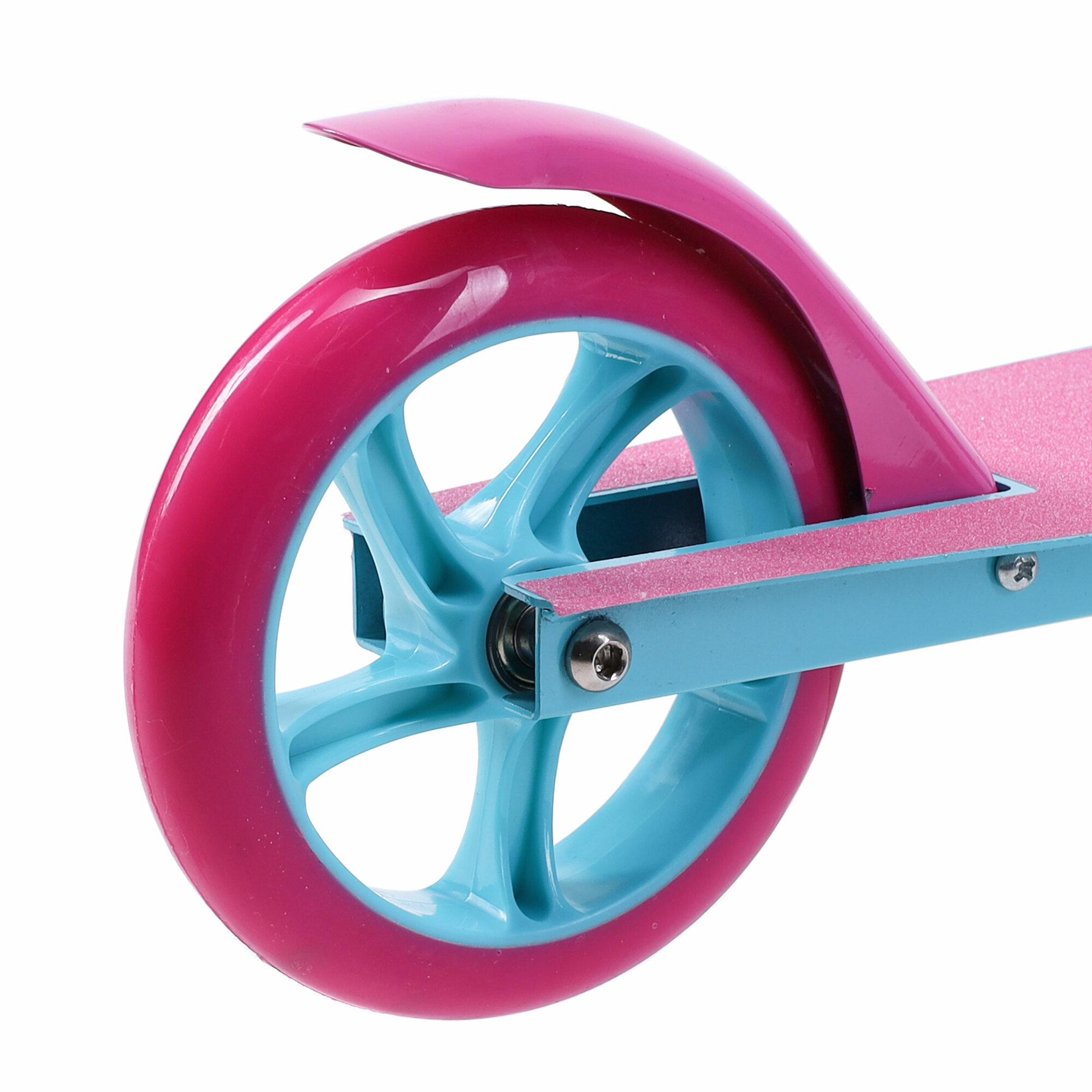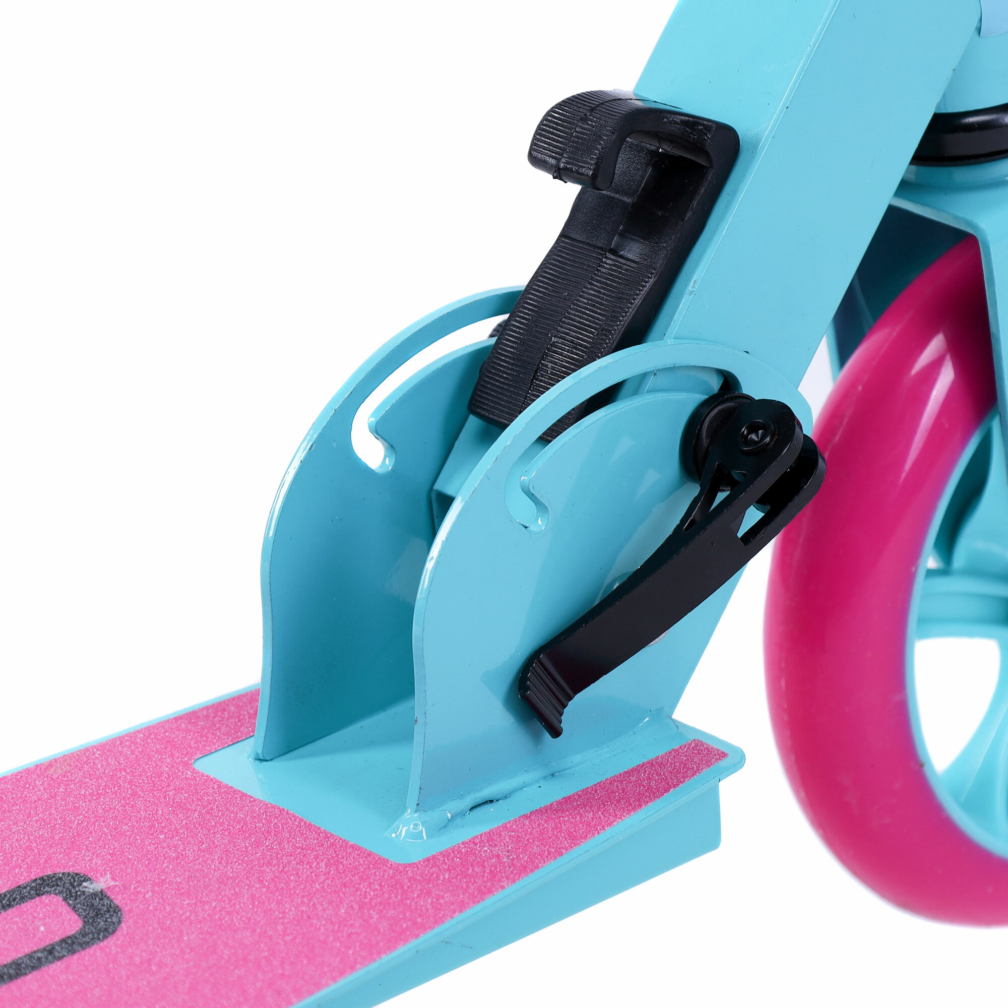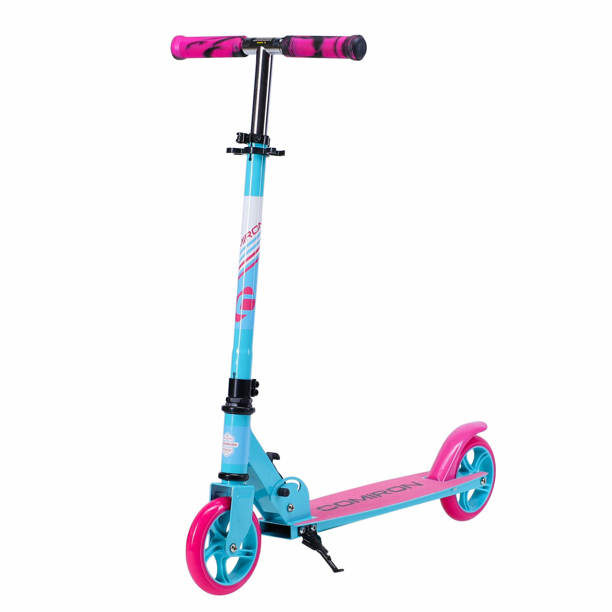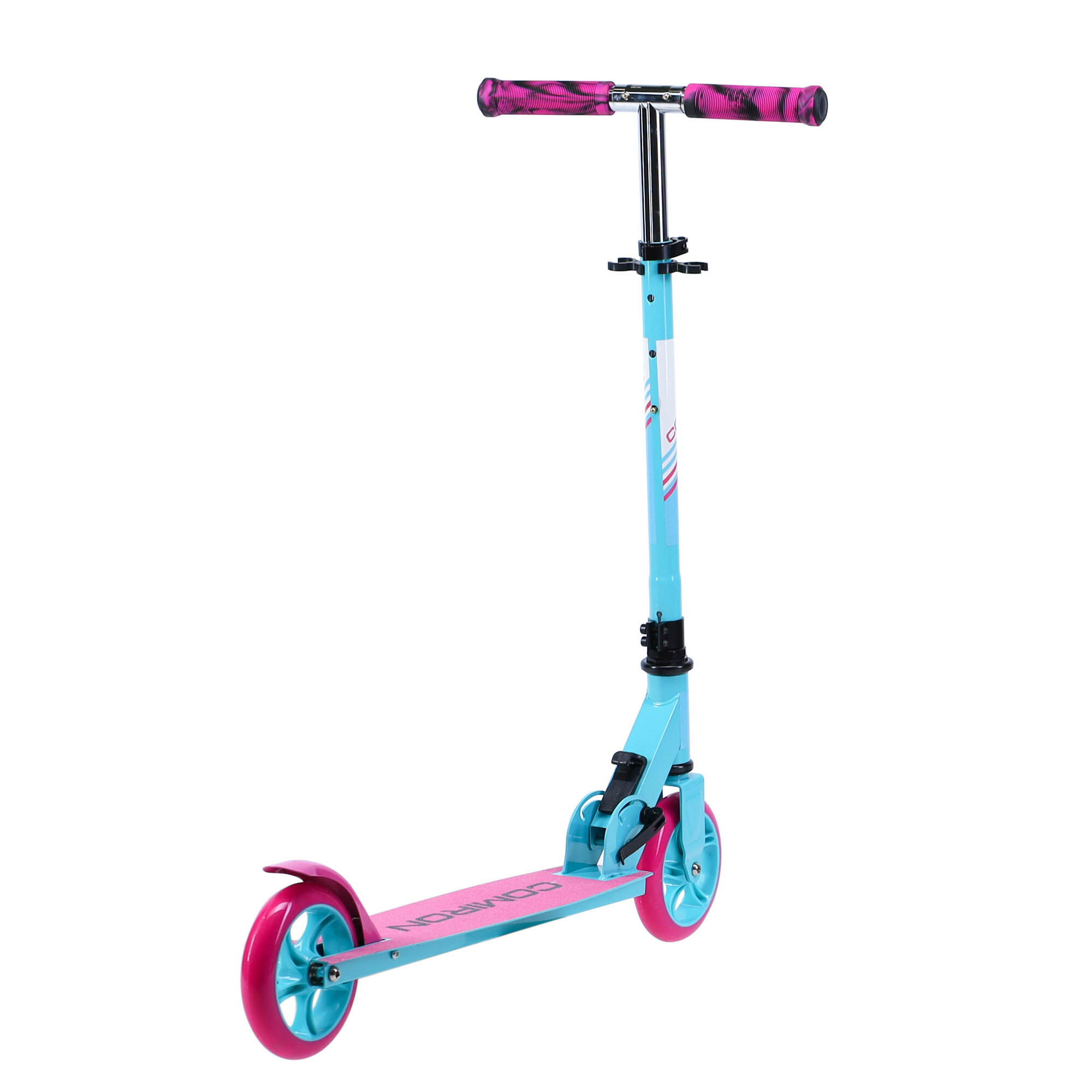Самокат двухколесный складной для девочки для мальчика детский COMIRON, колеса PU 145 мм, дека 510х120 мм, подножка, складной механизм, цвет розовый с бирюзовым / 1 шт.