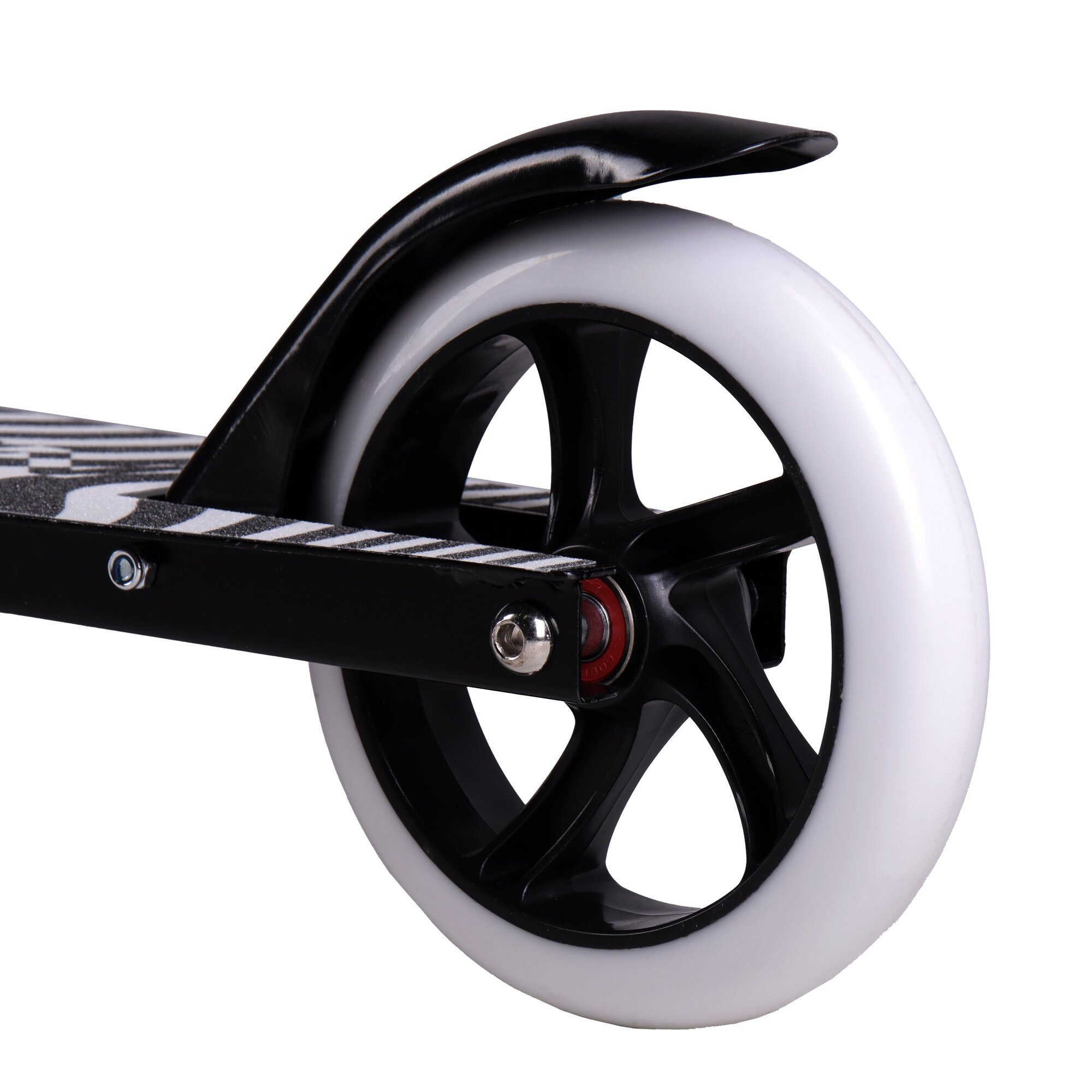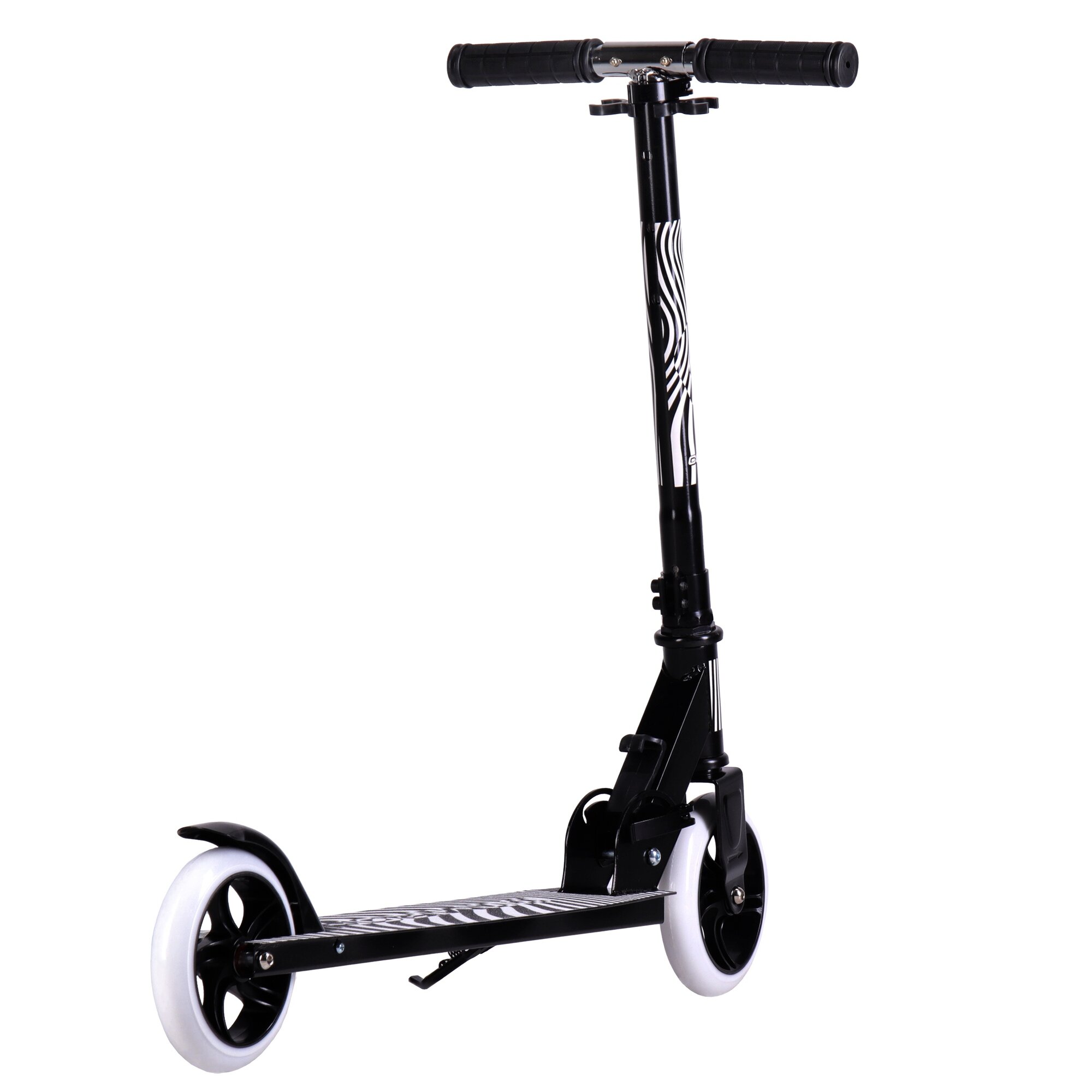 Купить Самокат двухколесный складной для девочки для мальчика детский COMIRON Zebra, колеса PU 145 мм, дека 510х120 мм, подножка, складной механизм, цвет черный с белым / 1 шт.