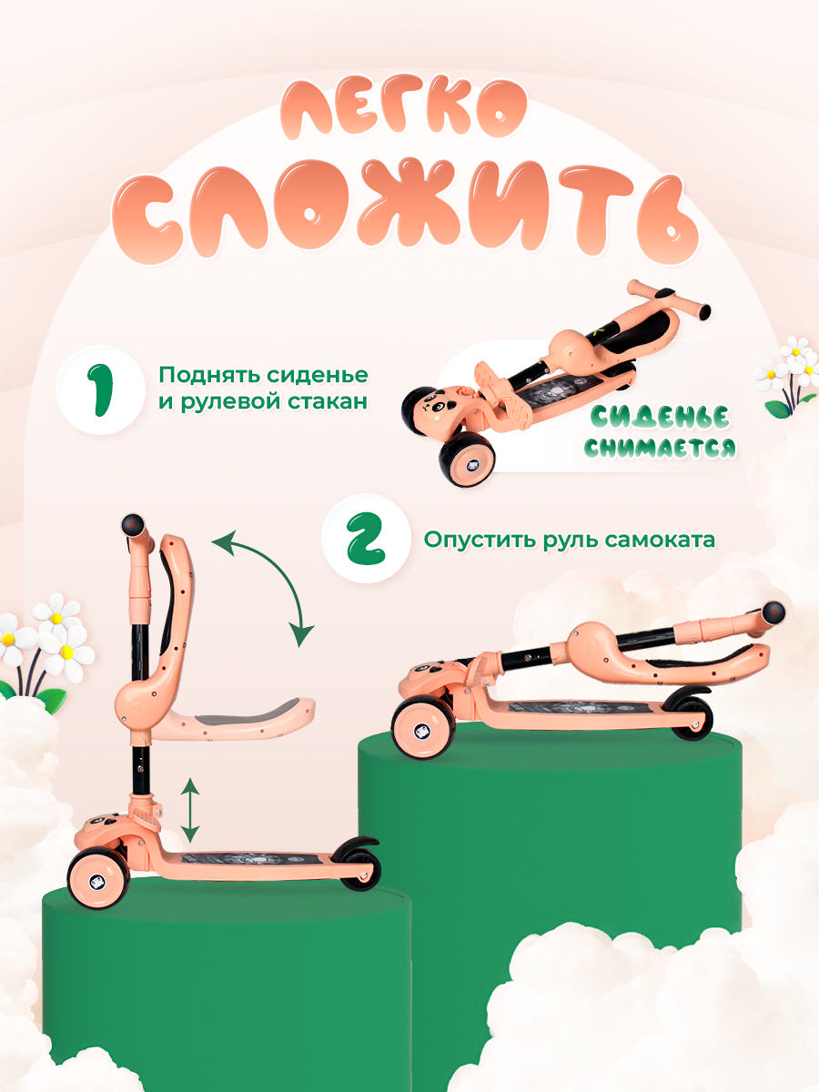СохранитьСамокат 3-х колесный складной с сиденьем COMIRON Yeenot Панда, светящиеся колеса интересное:
