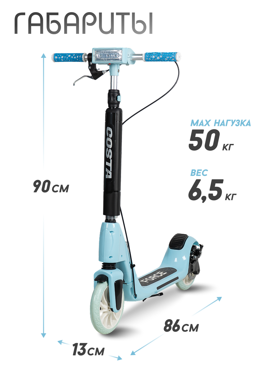 Самокат Costa CST-02, детский, двухколесный, складной, с регулировкой руля, фара, голубой интересное:
