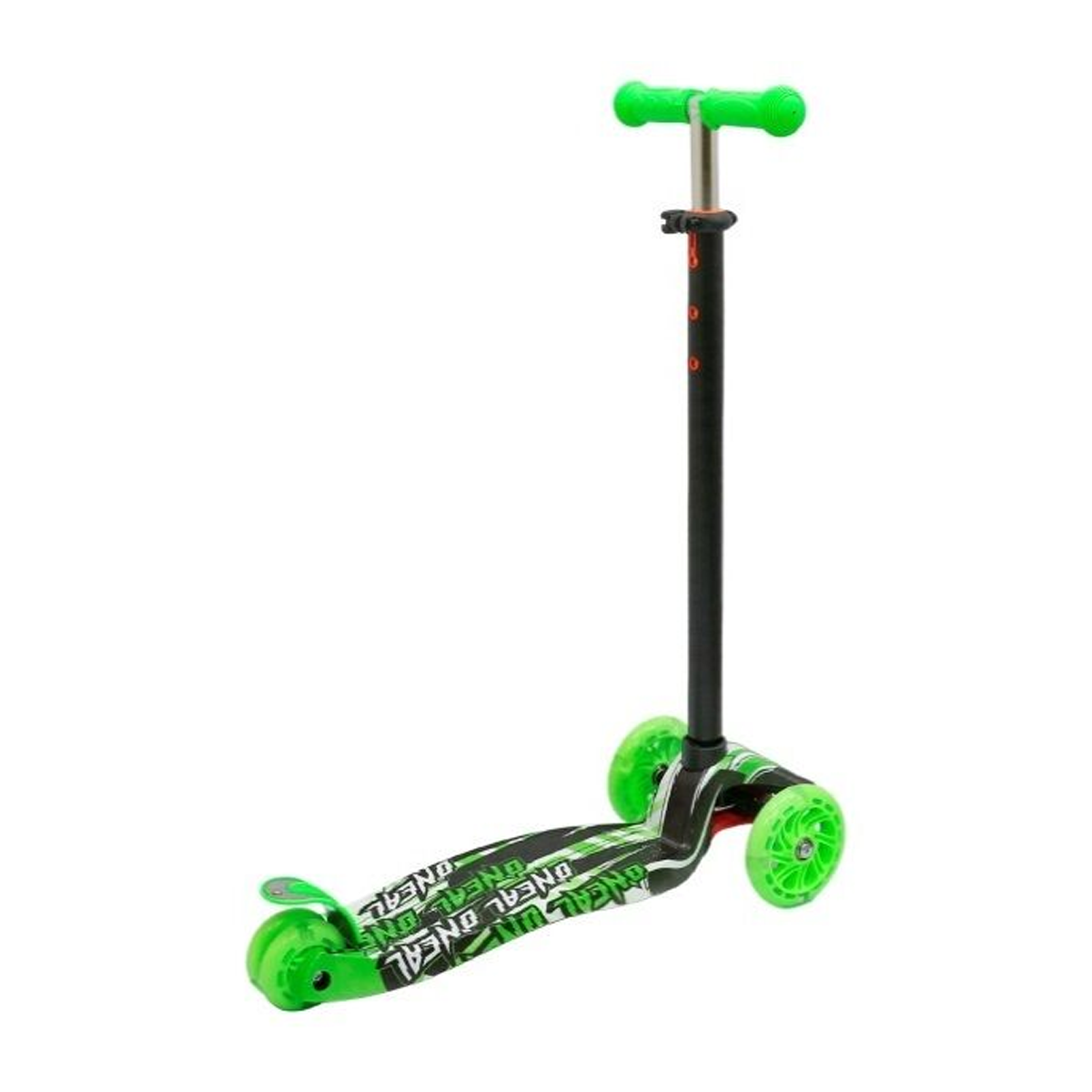 Детский самокат STREET RR1-S, трехколесный, зеленый с принтом, в пакете,