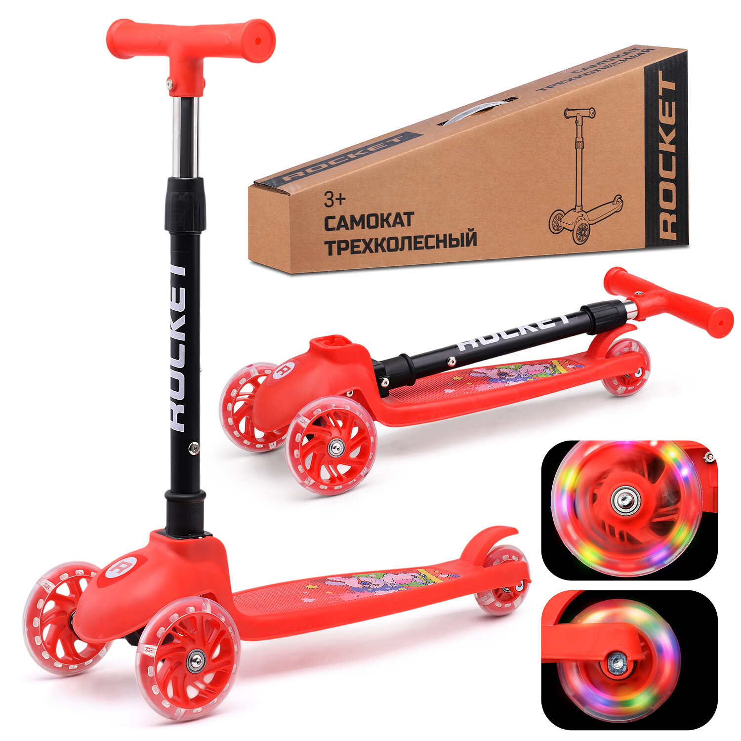 Купить Самокат детский трёхколёсный ROCKET R0188, цвет красный. Рекомендуемый рост: 85 – 115 см.