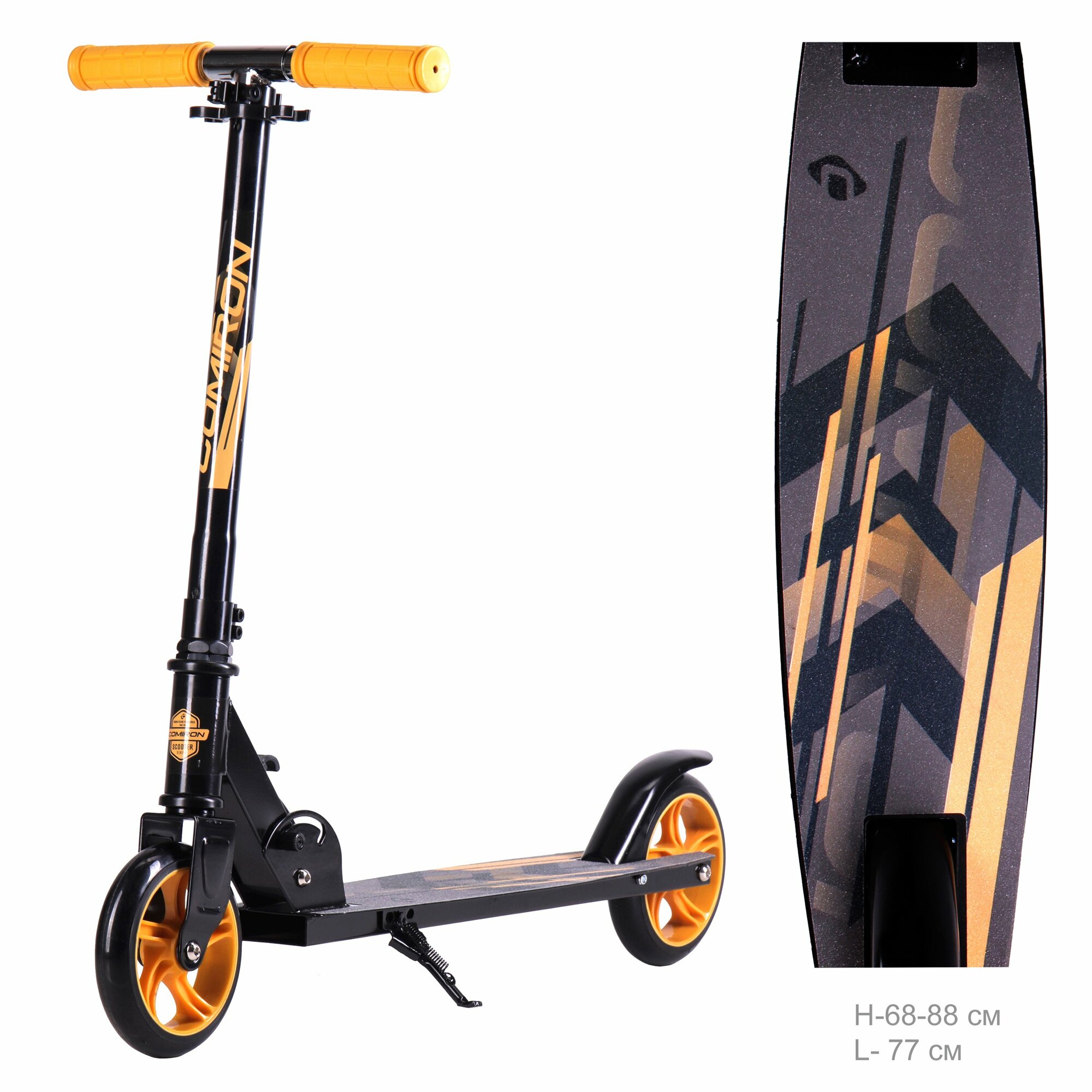 Самокат двухколесный складной для девочки для мальчика детский COMIRON "Zebra", колеса PU 200 мм, дека 520х100 мм, подножка, складной механизм / 1 шт.