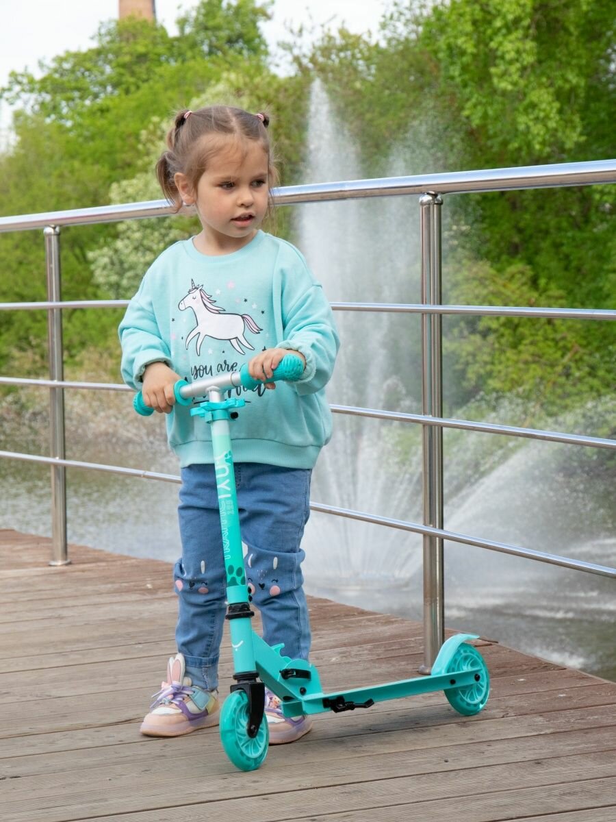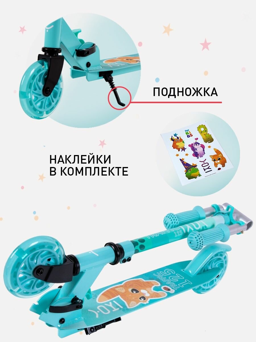 Купить Самокат детский складной Yoki Traffic 125, светящиеся колёса, бирюзовый