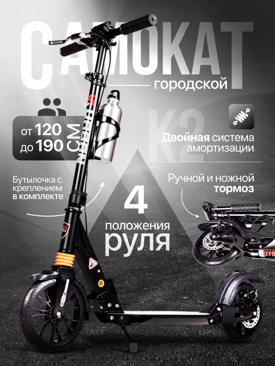 Самокат "Urban" , двухколесный , с дисковым тормозом , амортизаторами , 200 мм , черный интересное: