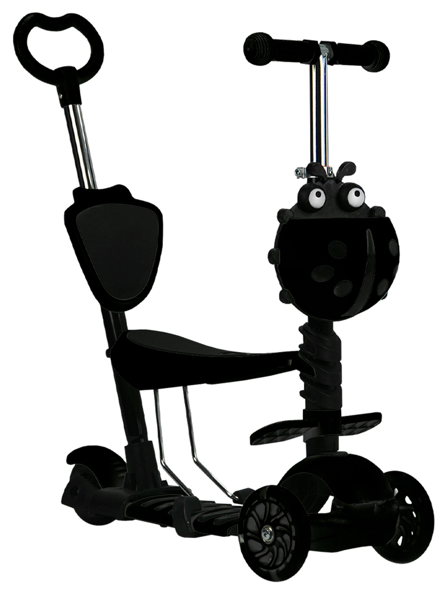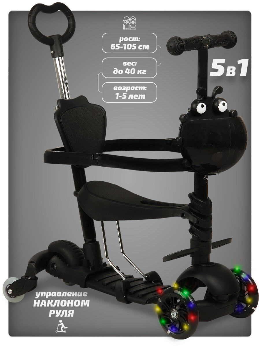 Купить Самокат трехколесный 5 в 1 для детей с родительской ручкой, 1-5 лет, светящиеся колеса, черный