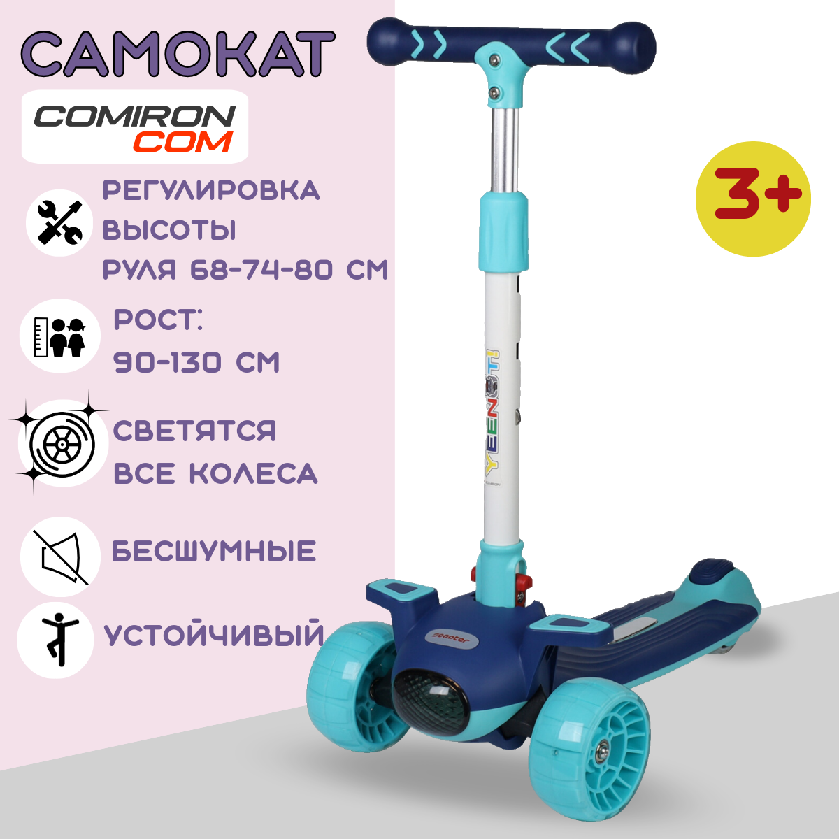 Детский трехколесный самокат COMIRON Yeenot, светятся все колеса, безопасный, стильный
