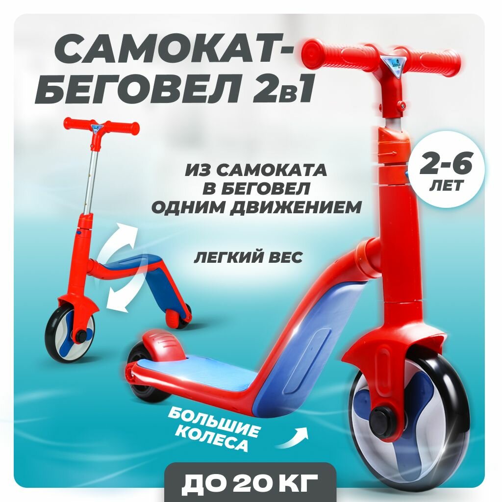 Самокат-беговел Solmax для детей,2в1 до 20 кг, красный интересное: