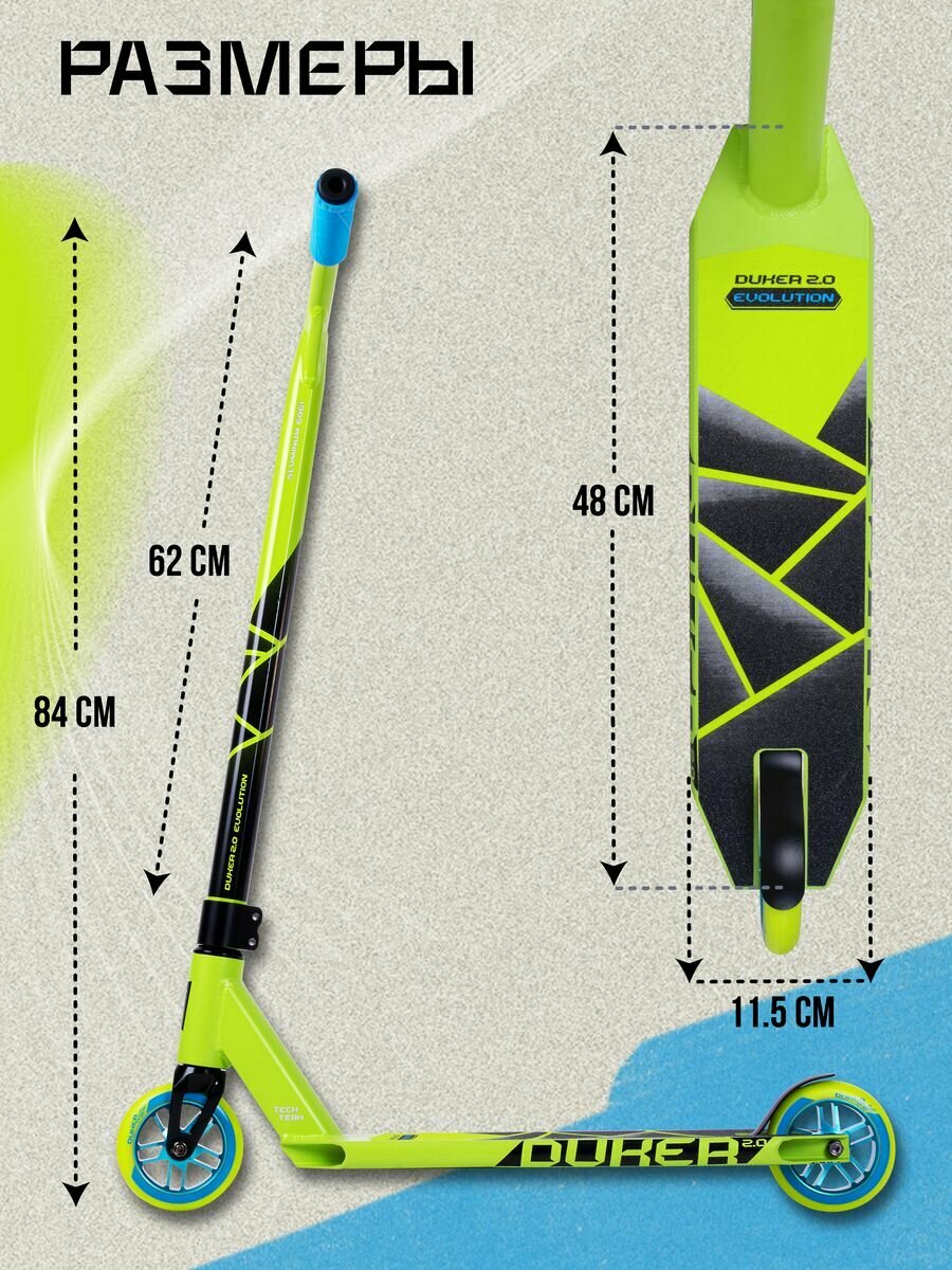 Самокат трюковой Duker 2.0 неон зелёный интересное: