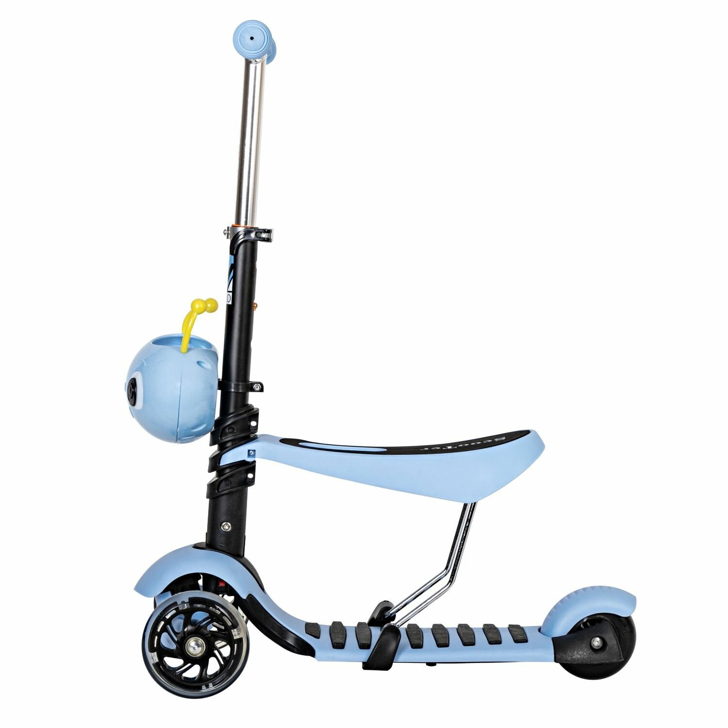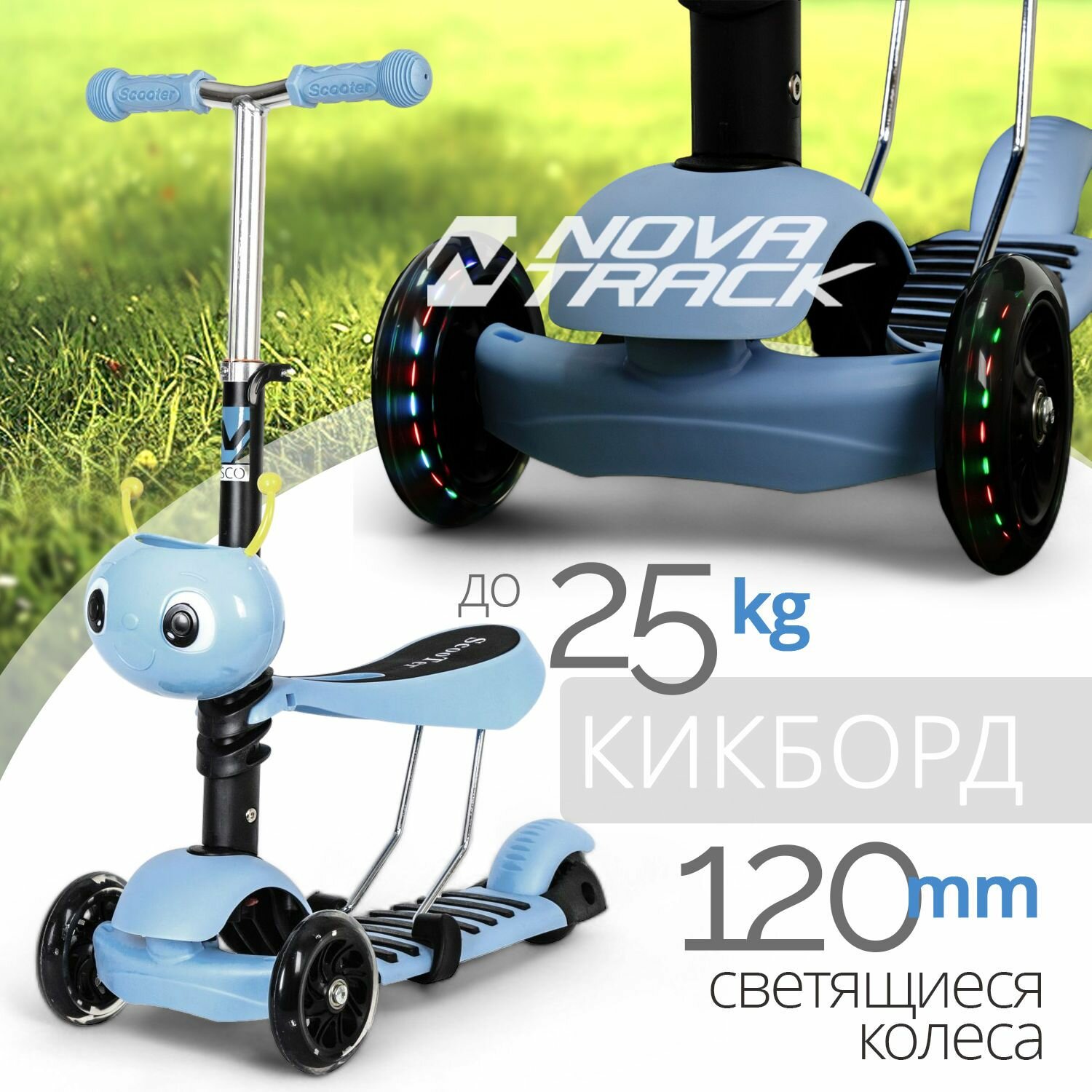 Купить Самокат Novatrack Disco-kids Saddle для детей, трансформер, свет. колеса PU 120*90мм, голубой
