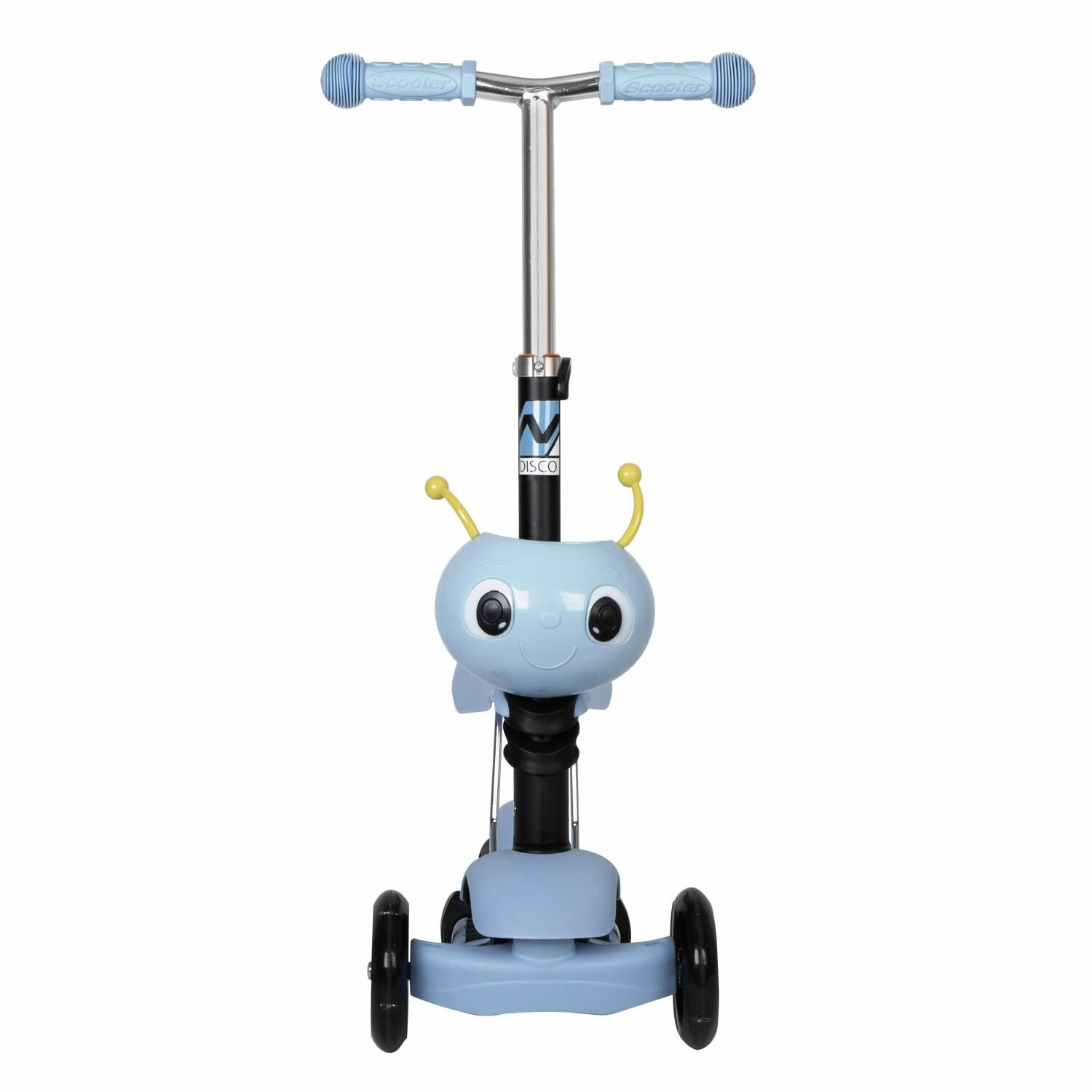Самокат Novatrack Disco-kids Saddle для детей, трансформер, свет. колеса PU 120*90мм, голубой интересное: